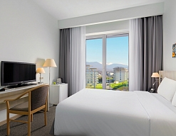 Расскажу про свой опыт пребывания на отдыхе. Номер был неплохой, довольно просторный, но не было шкафа. Все вещи хранила в сумках. Это, конечно, неудобно. Также не было в санузле жидкого мыла. Правда, по первой просьбе принесли.