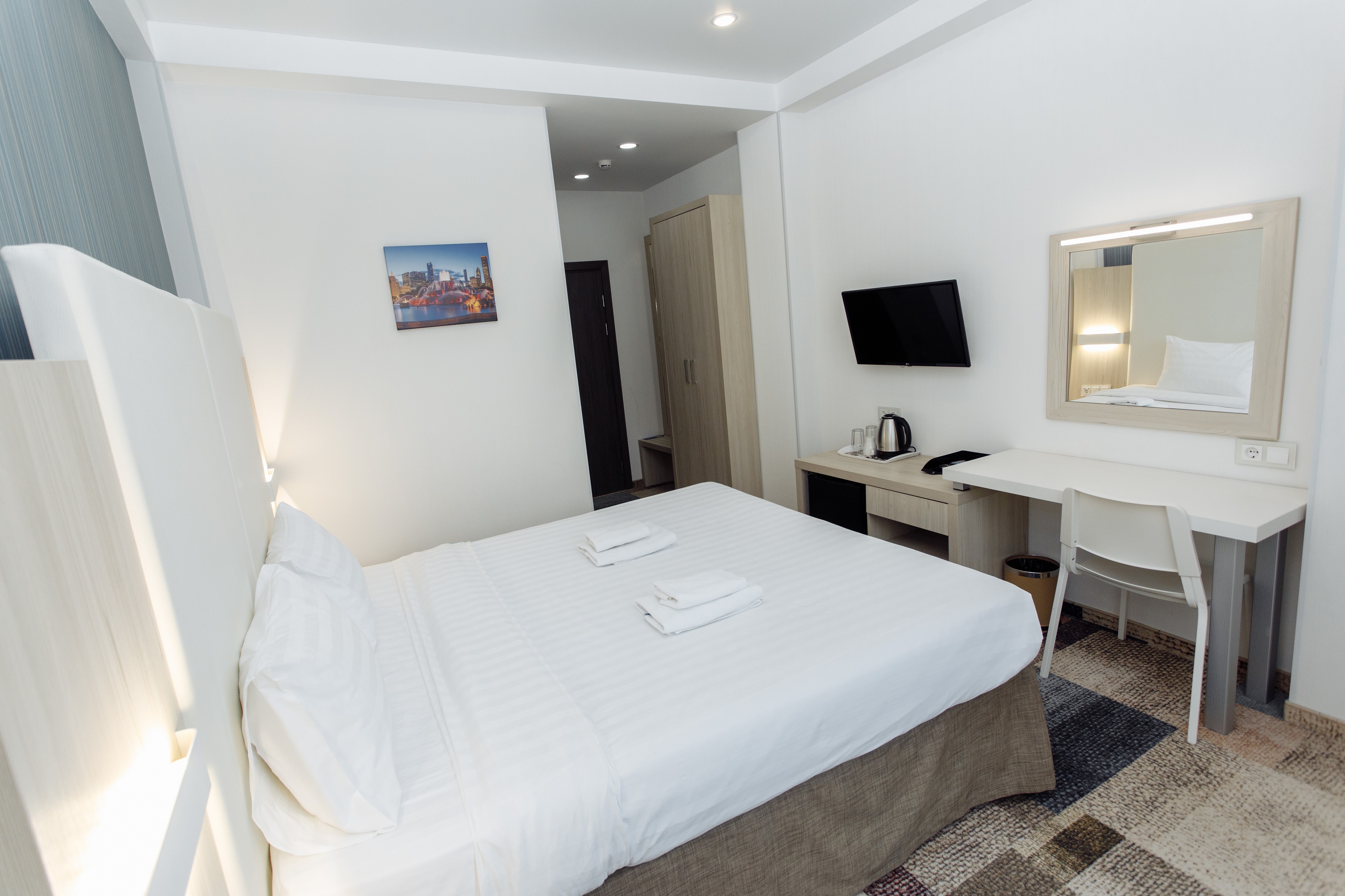Шестиэтажный корпус отеля, оснащенный лифтом, расположен на первой береговой линии. Гостей ожидают номера разной категории — Стандарт, Студио, Делюкс, Апартаменты. Все номера оснащены собственным санузлом, кондиционером, есть вся необходимая техника — плазменный телевизор, фен, электрочайник. В Апартаментах и Студиях имеется оборудованная мини-кухня, во многих номерах предусмотрены балконы, с которых открываются живописные виды на море или горы.