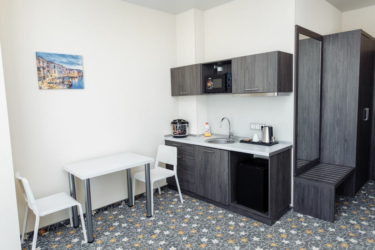 Понравилось · Великолепный номер. шикарная и очень удобная кровать, в номере есть все для проживания, в том числе микроволновка, мультиварка, чайник, вся посуда, халат, тапочки.
