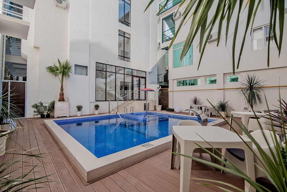 В отеле работе небольшое кафе с современным стильным дизайном. В распоряжении гостей два открытых бассейна, один из них расположен на крыше отеля, есть сауна, хаммам, солярий, зона отдыха с шезлонгами. В отеле для отдыхающих регулярно проводятся развлекательные мероприятия, вечеринки и кинопоказы. Также на территории доступен wi-fi, для автовладельцев предусмотрена охраняемая парковка.