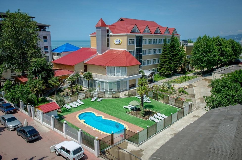 Расположение: Первая линия у моря (50 м до пляжа), 500 м до центра, 5 км до аэропорта Адлер