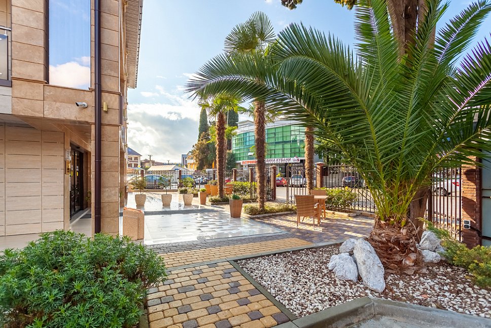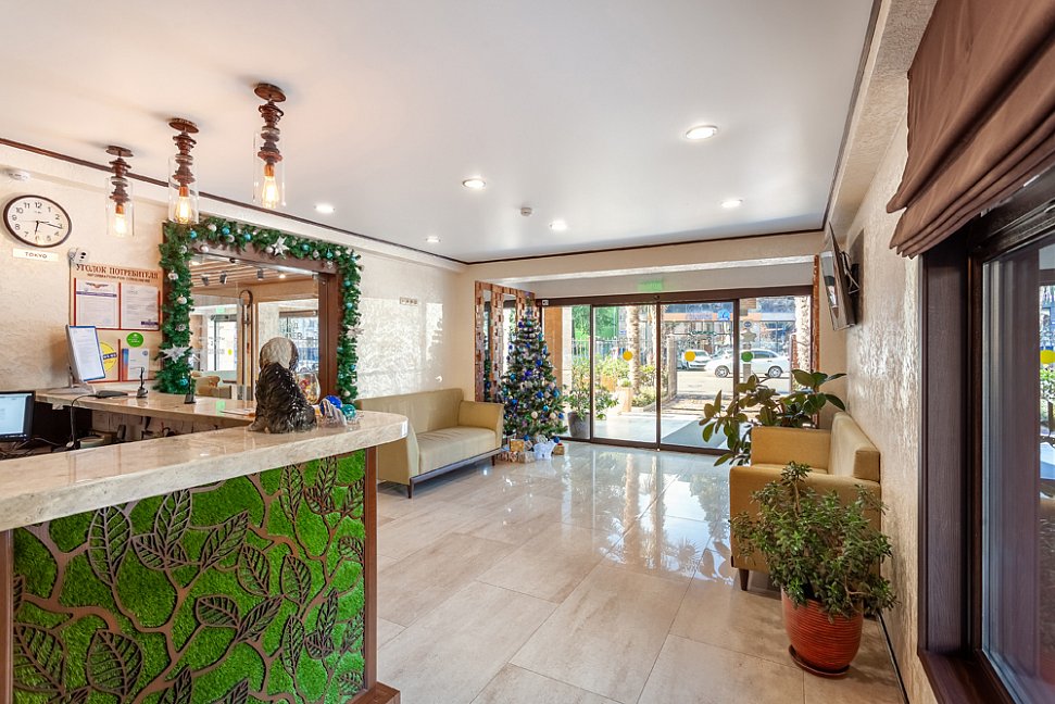 Удобное расположение отеля делает его привлекательным в любое время года. В пешей доступности от нас находятся оборудованные пляжи Чёрного моря, Олимпийский парк с его разнообразными развлечениями, а также кафе, рестораны, продуктовые магазины и всё, что нужно, для проведения комфортных и насыщенных каникул в живописном Адлерском районе города Сочи. Для любителей активного зимнего отдыха сообщаем, что до Красной поляны всего 30 минут езды на машине.