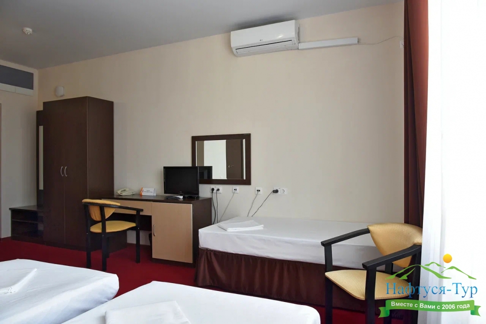 Отдыхала с мужем в августе 2015, получился очень симпатичный отпуск. Заселили сразу и довольно быстро. В номере холодильник, телевизор, кондиционер, и большая кровать с потрясающе белым бельем. Кстати, на 3 день белье меняли.