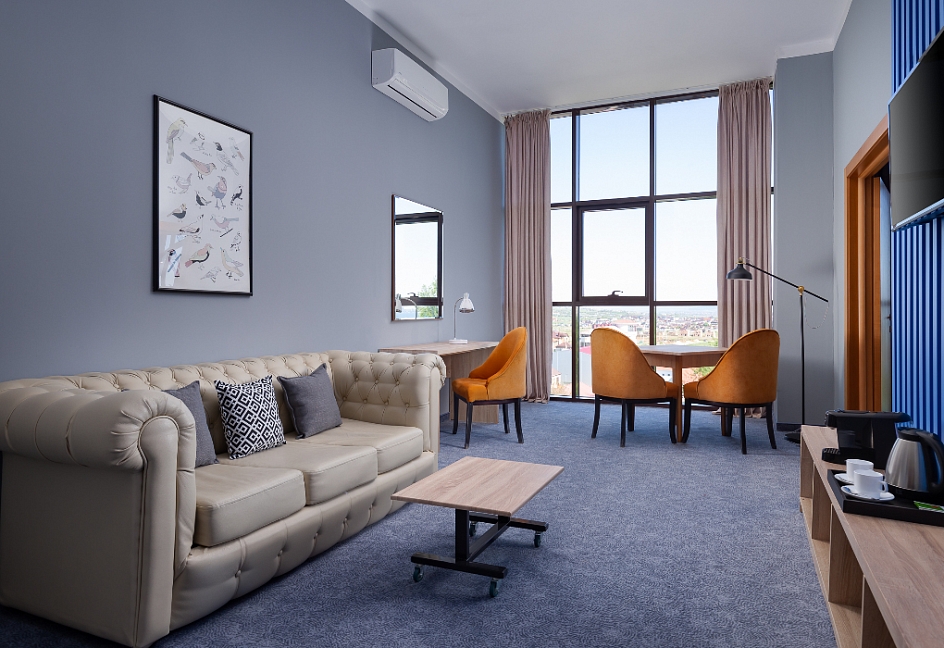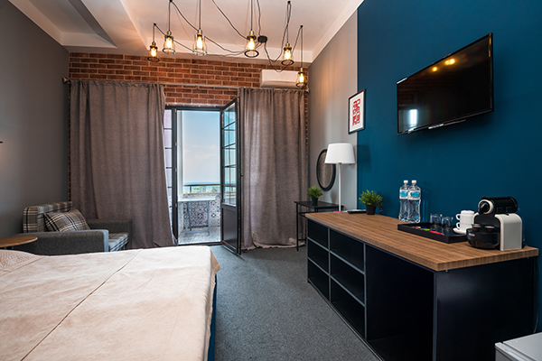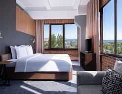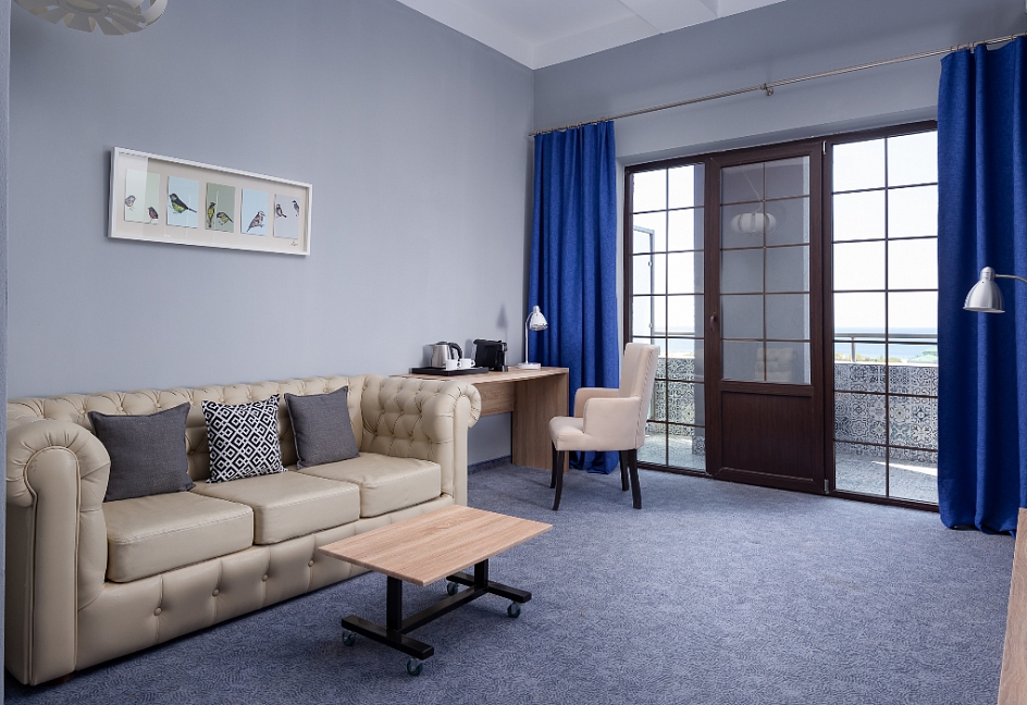 2-мест.(разм. в 3-мест.) 2-комн. люкс с панорамными окнами (боковой вид на море)