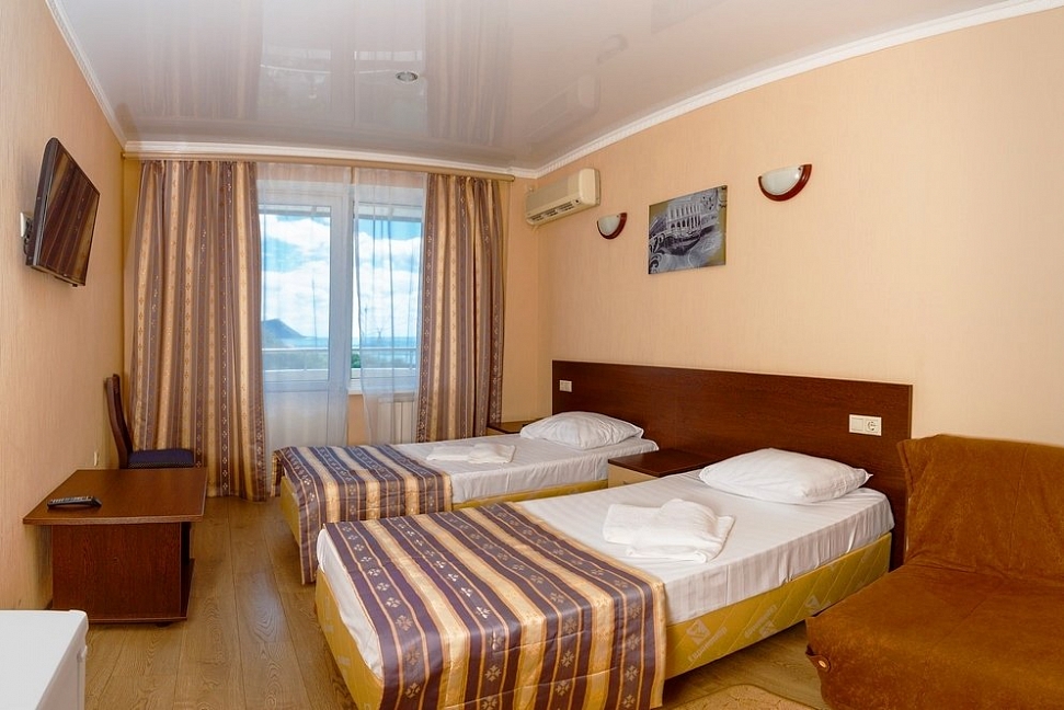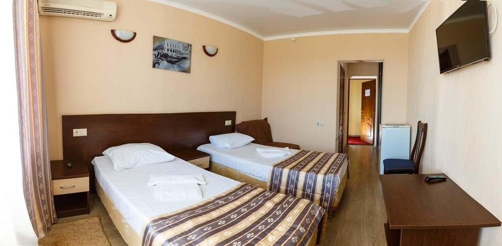 Отдыхали с друзьями в Анапе. Заказывая номер, ни на что особо не рассчитывали, но оказалось очень даже не плохо.В целом отдых доставил море удовольствия. Сам пляж очень широкий, места всем хватает. Ну а питание поразило своим разнообразием.