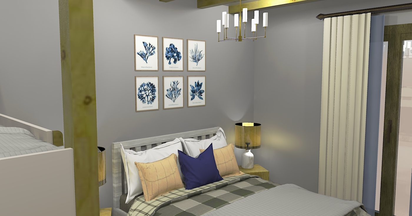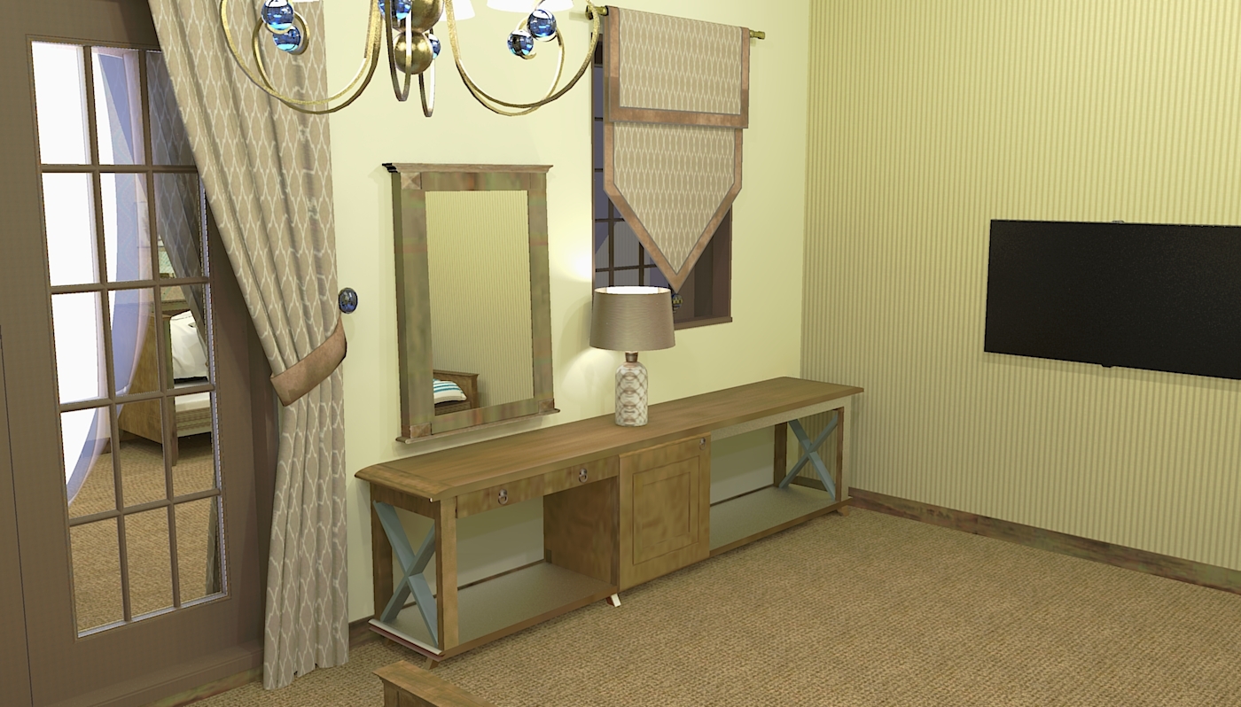 вешалка, зеркало, кровать двуспальная, кровать двухъярусная, прикроватные тумбочки, стол, стулья, шкаф