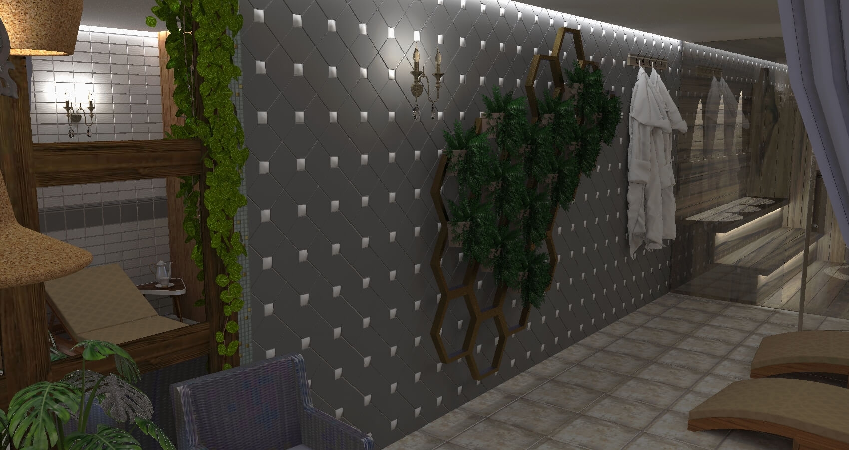 с душем (поддон), тапочки, туалетные принадлежности, фен, халат