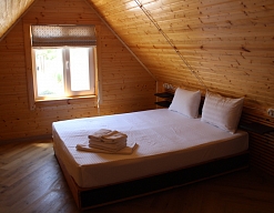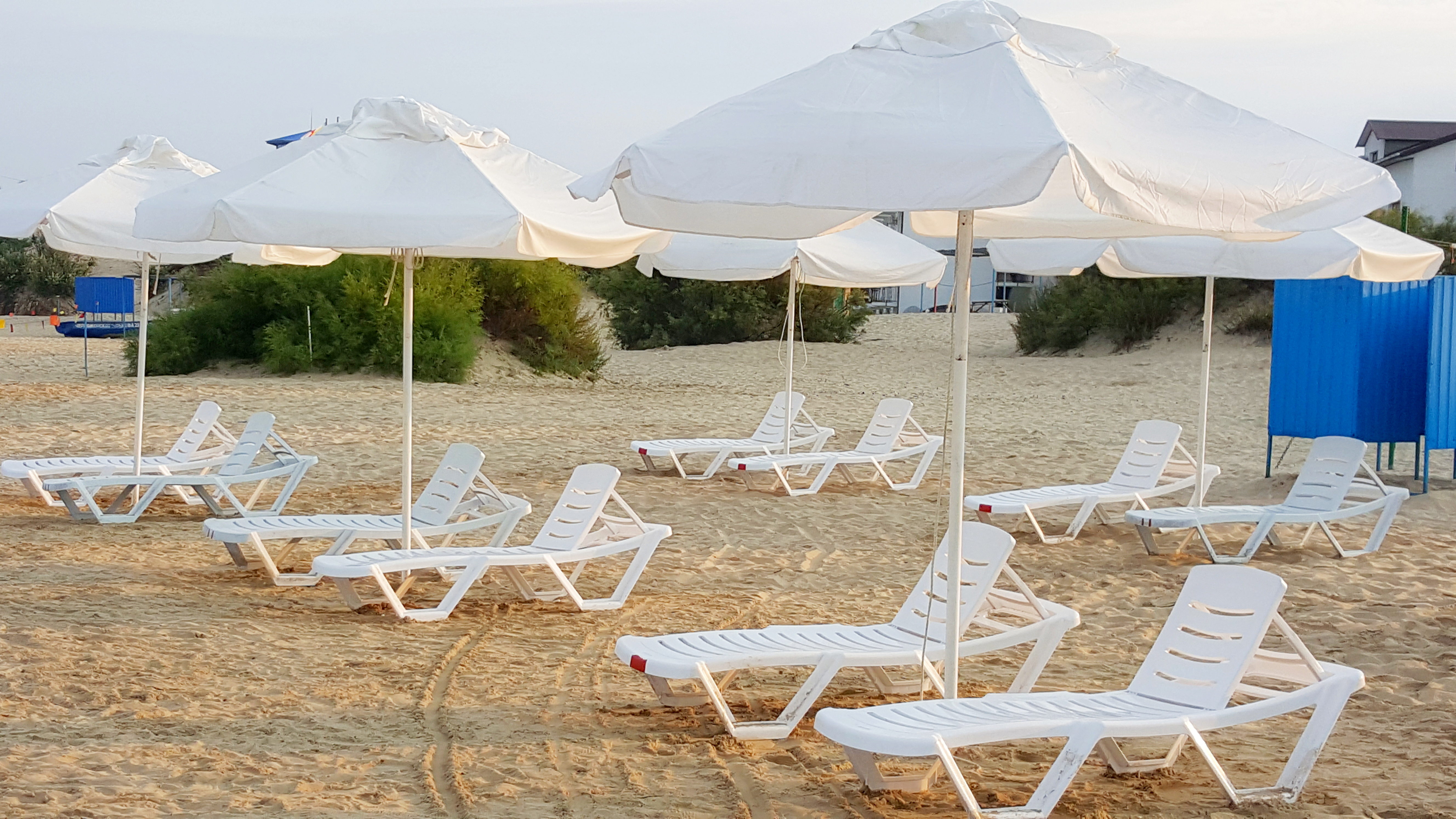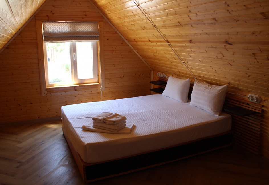 Собственный песчаный пляж в 600 метрах оборудован зонтиками, шезлонгами, туалетом
