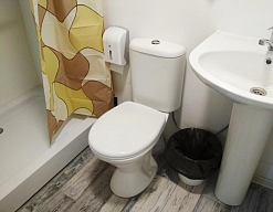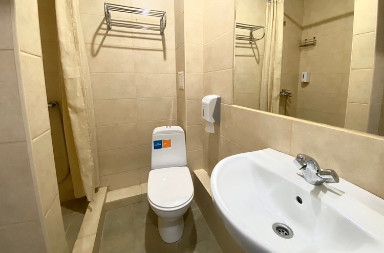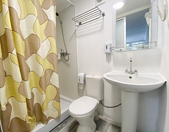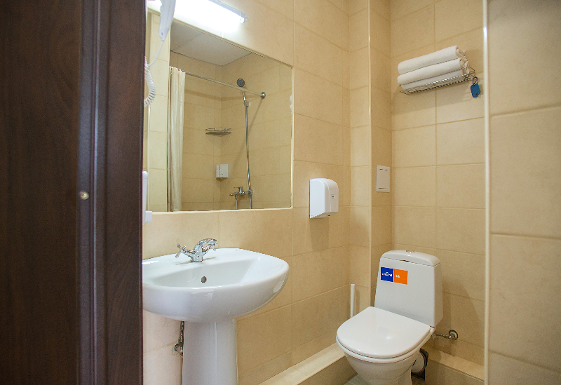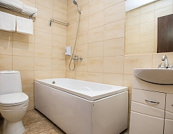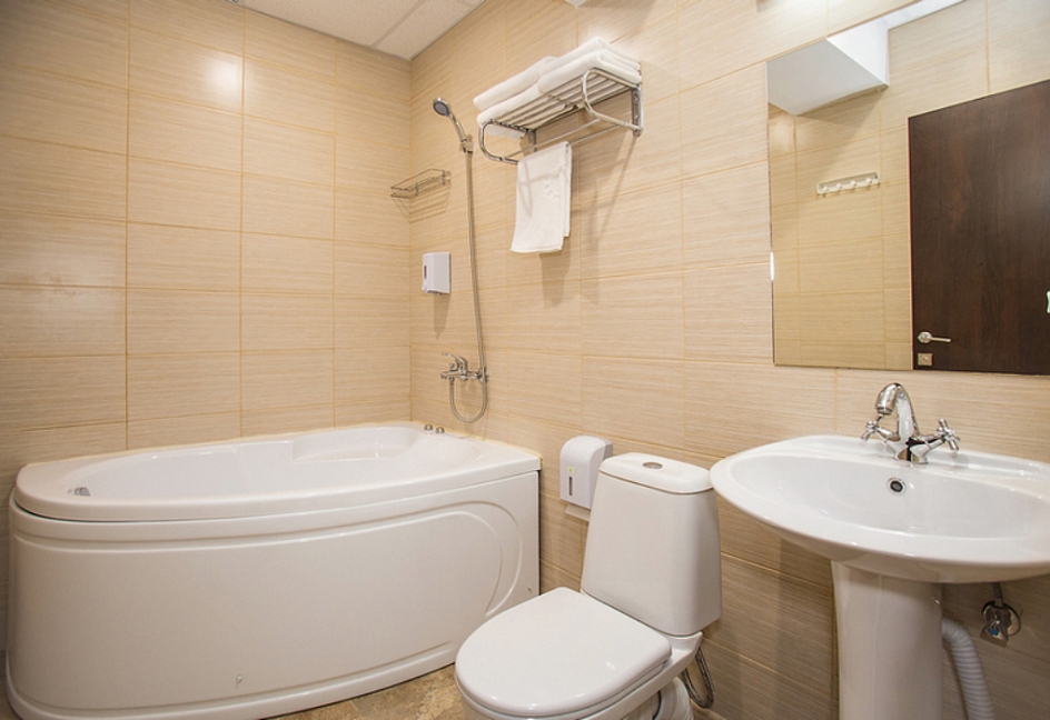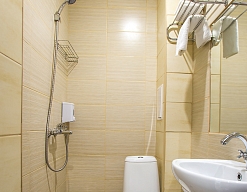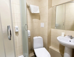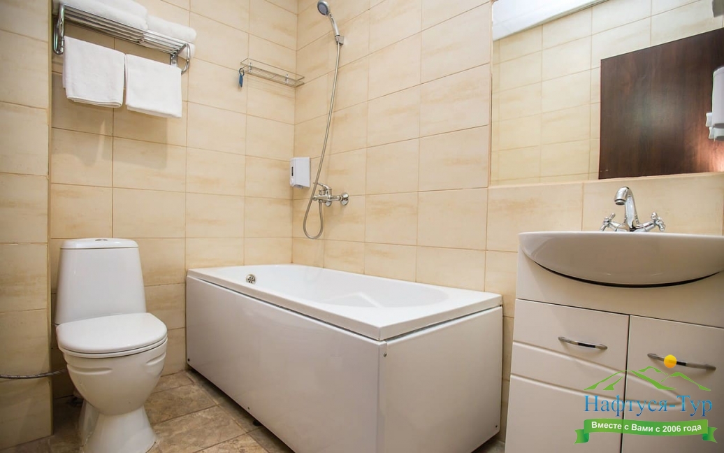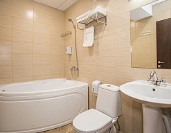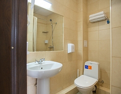 с ванной или душевой кабиной, туалетные принадлежности, фен