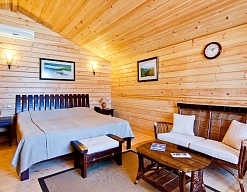 Отель практически расположен прямо на пляже - это его уникальная особенность от других отелей. Есть люди, которые уже 3-й год подряд приезжают сюда и говорят только позитивные вещи об отеле. Здесь мило, чисто и уютно. Мы в отеле впервые, но также в восторге!!! Главным достоинством является месторасположение - море, пляж совсем "под носом". За этим собственно говоря сюда и приехали. Домики уютные и комфортабельные, располагают к тому, чтобы остаться здесь подольше. Понравился дизайн самых домиков. На территории растут кедры, много цветов, удачно сделана парковка, свежий воздух, отличный запах деревьев. Персонал очень старательный и добродушный. Замечательные завтраки с прекрасной сервировкой. Каждое утро в районе буйков, наблюдали дельфинов. Такого отеля в Анапе точно не найти. Так что езжайте сюда побыстрее. Спасибо всем за тёплый приём, приятную атмосферу, доброжелательное отношение к гостью. Обязательно ждите нас ещё!!!