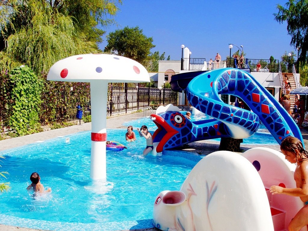 Для детей на территории расположен мини-аквапарк, детская площадка, детская игровая комната, где можно весело проводить время под присмотром опытных воспитателей.