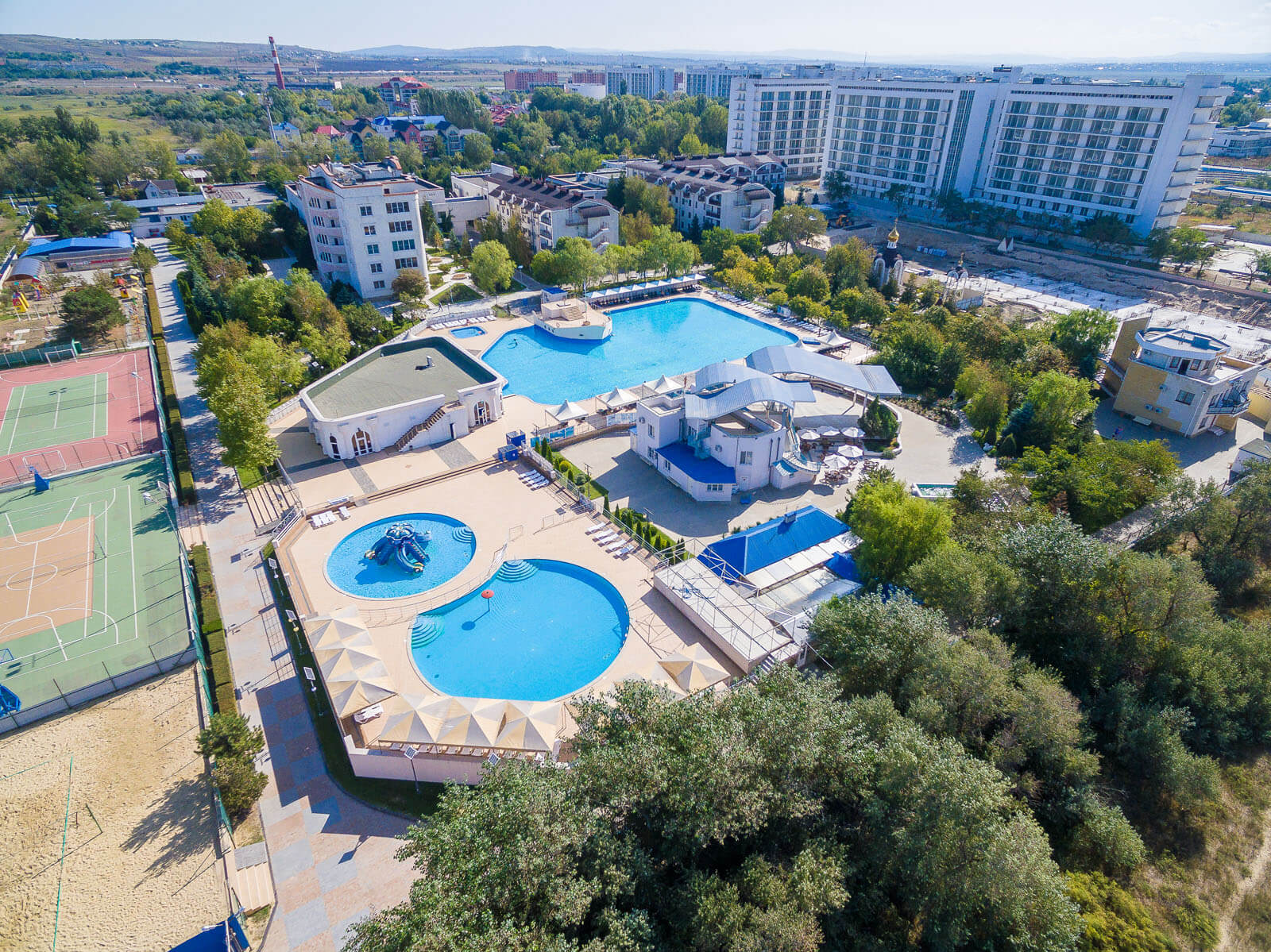 - 1600 кв. м. площадь водного зеркала бассейна с морской водой