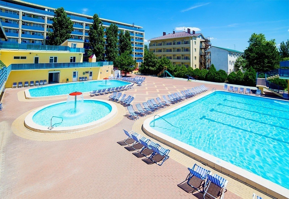 Бассейн открытый 25х10, вода пресная, детское отделение, не подогреваемый, пользование бассейном входит в стоимость, работает: сезонно с мая по октябрь.