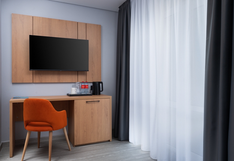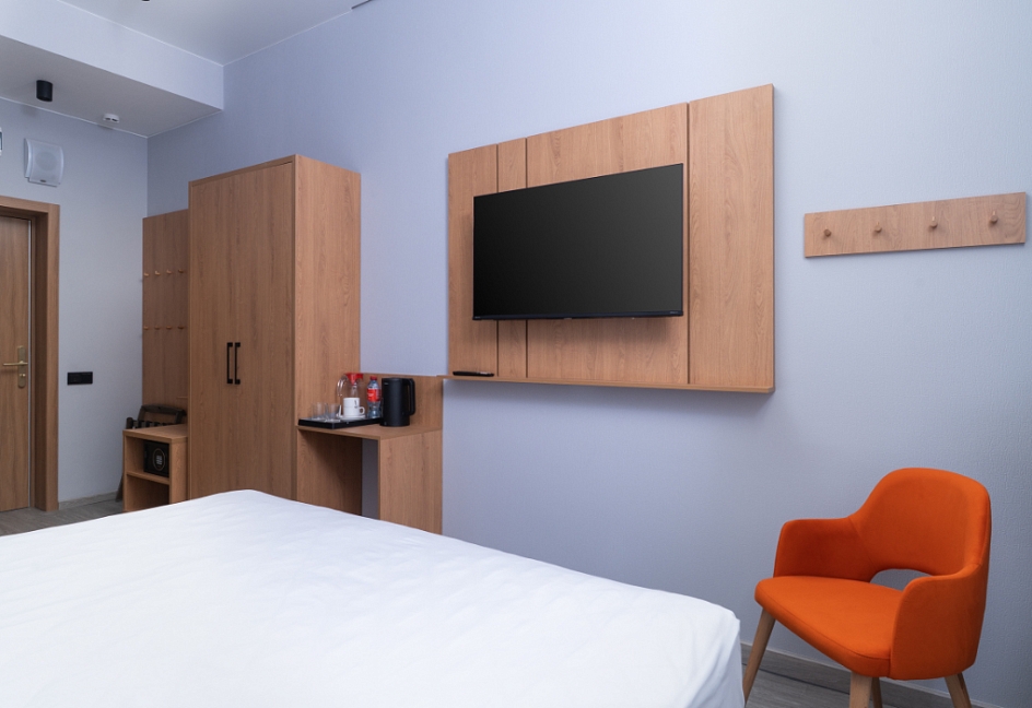 гладильная доска, мини-холодильник, набор посуды, сейф, сплит-система, телевизор, телефон, утюг, чайный набор посуды, электрочайник