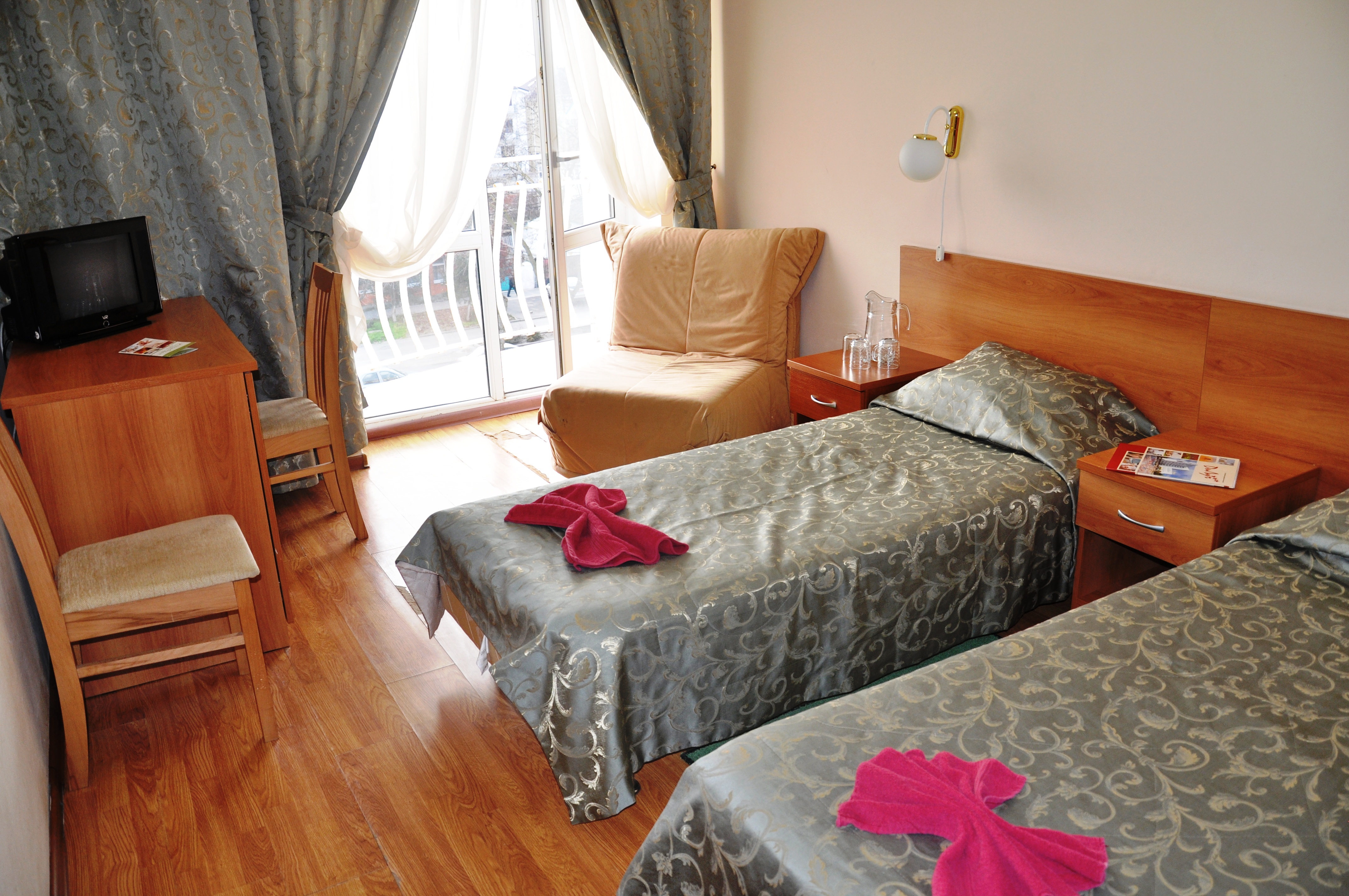 смена полотенец (1 раз в 3 дня) , смена постельного белья (1 раз в 3 дня) , уборка номера (ежедневно)
