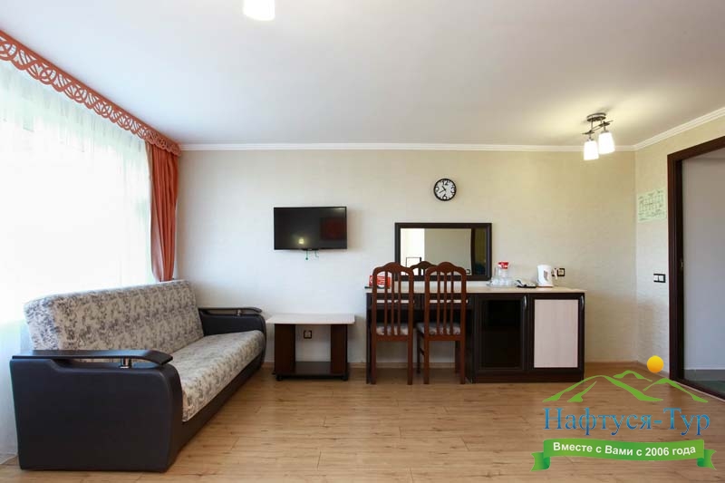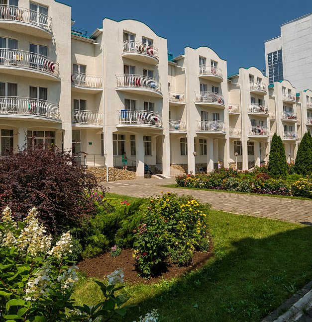 Комфортабельный санаторий на берегу Черного моря. Уютные номера, можно выбрать по цене или по комфорту, хотя все номера оборудованы всем необходимым. Лечебная база оснащена новейшими приборами. Мед.персонал приветливый и отзывчивый. На территории крытый бассейн с морской водой, рядом большой, чистый пляж. В номерах тихо, чисто и очень уютно. Питание без изысков, но качественное. К услугам отдыхающих разнообразие экскурсионных маршрутов, концертные залы, кафе, рестораны. Минусы: Сравнительно недорого можно отдохнуть только в январе-апреле, все остальное время дорого, особенно с лечением, так как огромная лечебная база по всем многим направлениям.
