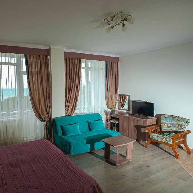 Были в санатории Русь с 22.08.по 05.09.17 г. 2 путёвки купили за 62 тысячи. Номер был с видом на море. Номерной фонд в 1 корпусе старый,убираются плохо, только пылесос и пол, раковину, унитаз и душевную раз в 5 дней.