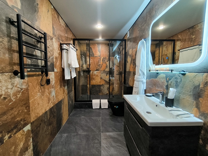душевая кабина,набор полотенец,косметический набор,фен,халат