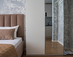 вешалка, зеркало, кресло-кровать, кровать двуспальная, стол, стулья, шкаф-купе