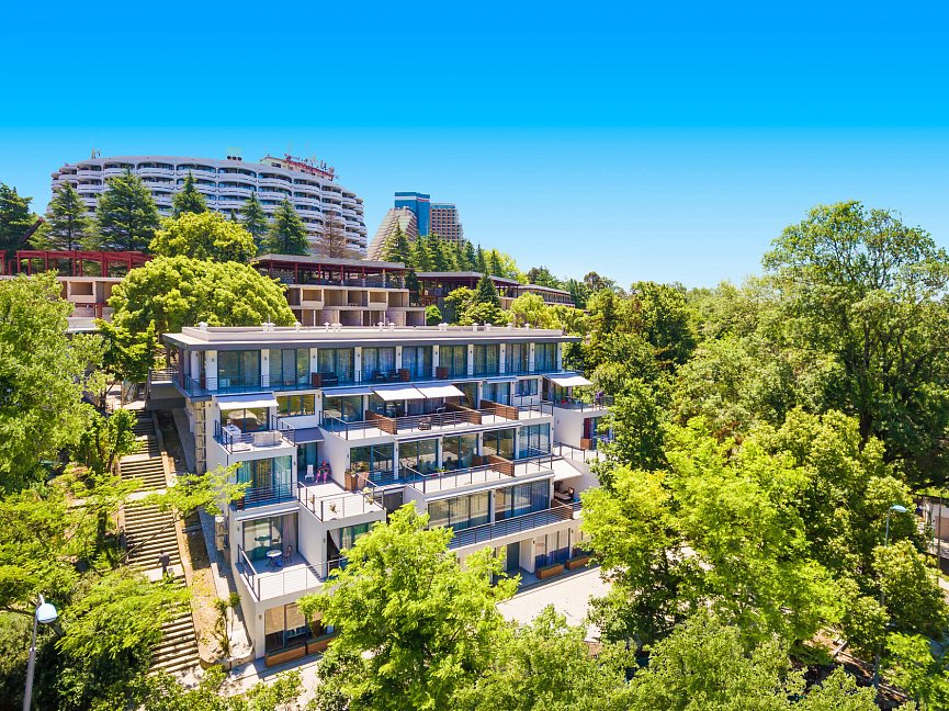 Поездом до ж/д вокзала г. Сочи, далее на автобусе №75, 81, 154, 169 до остановки «Чайная фабрика», далее пройти 830 м до апартаментов.