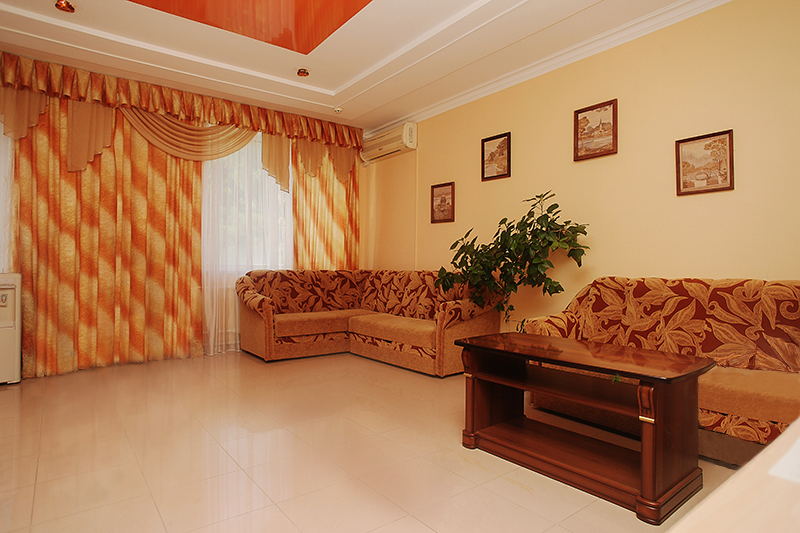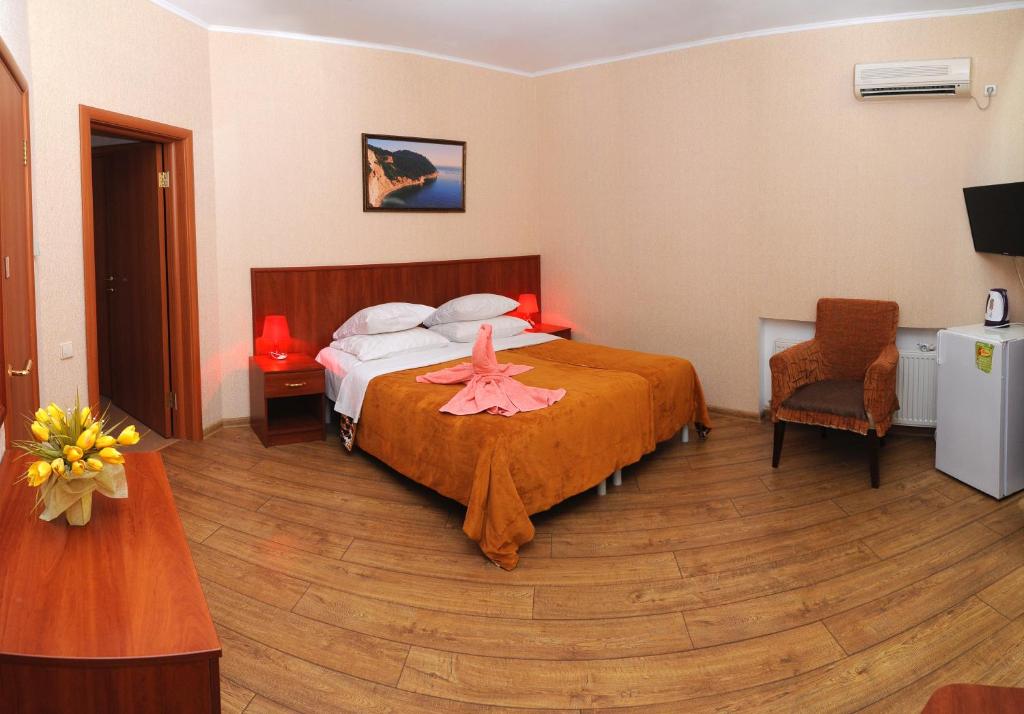 Для гостей предлагаются номера категории Стандарт 2-местный и Стандарт 3-местный. Комплектация номеров включает в себя необходимую мебель, телевизор, кондиционер, холодильник, ванную комнату с душем. На 1-м этаже расположена оборудованная кухня для самостоятельного приготовления пищи.