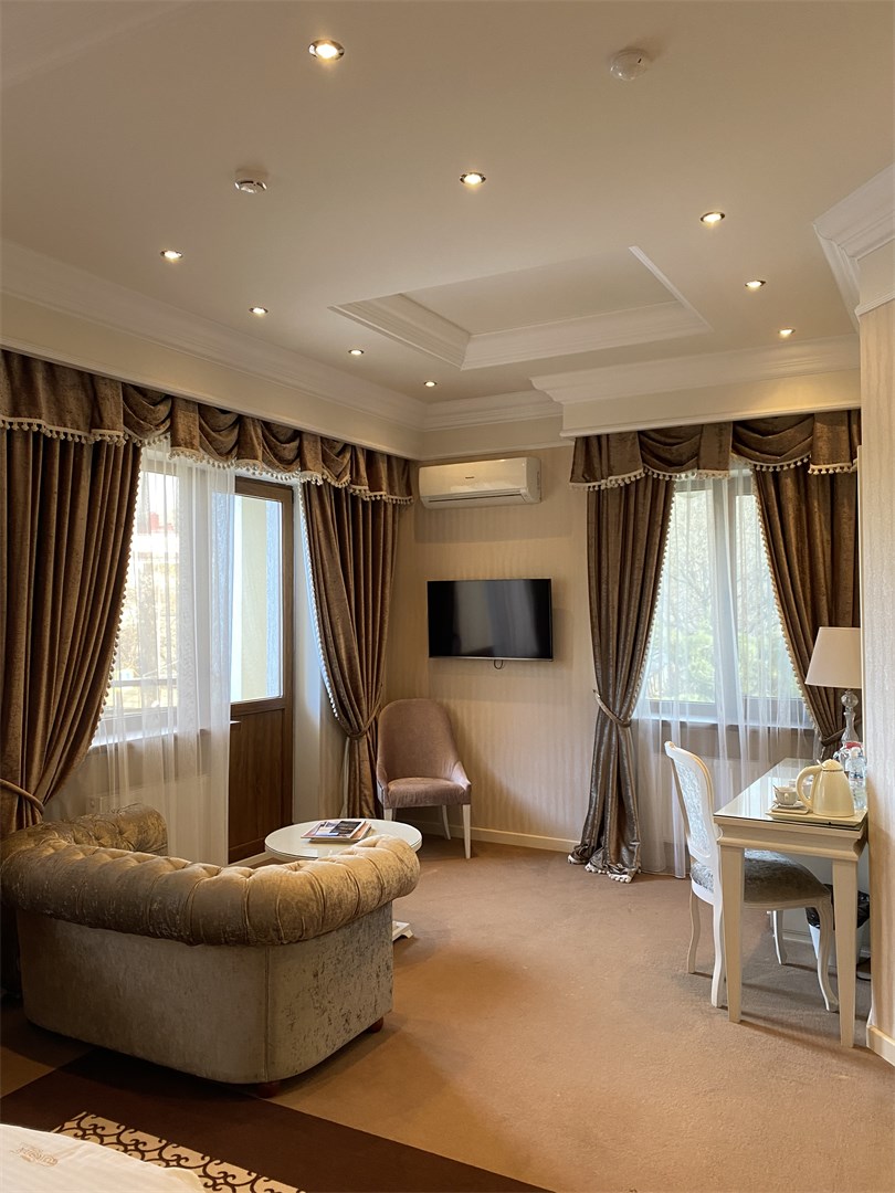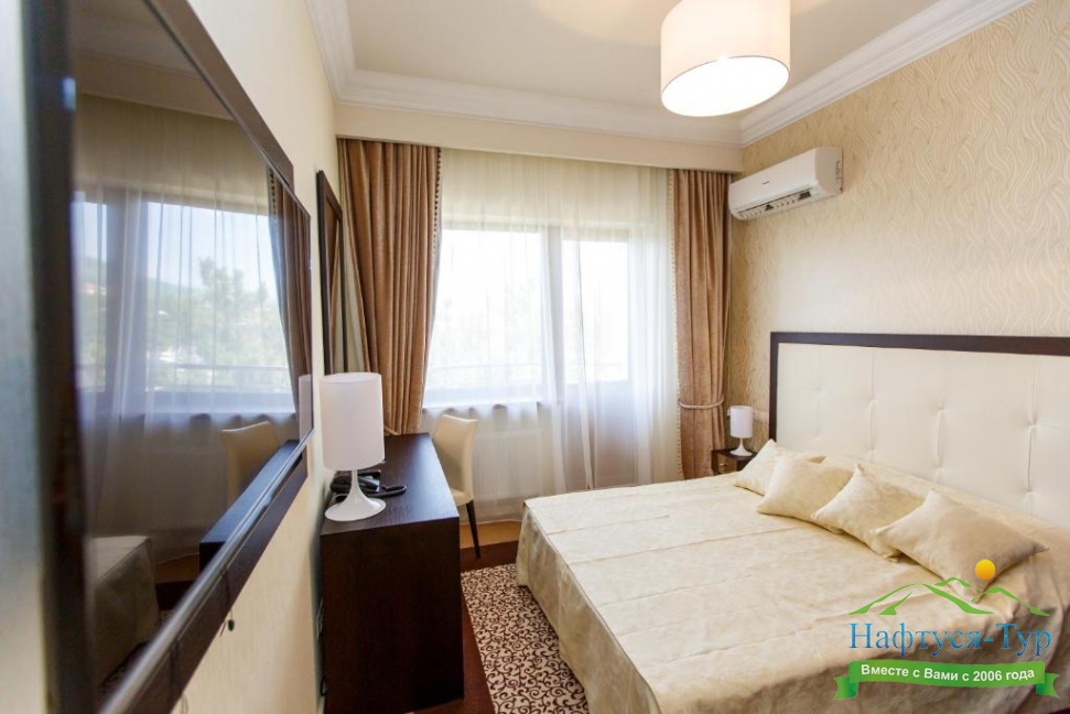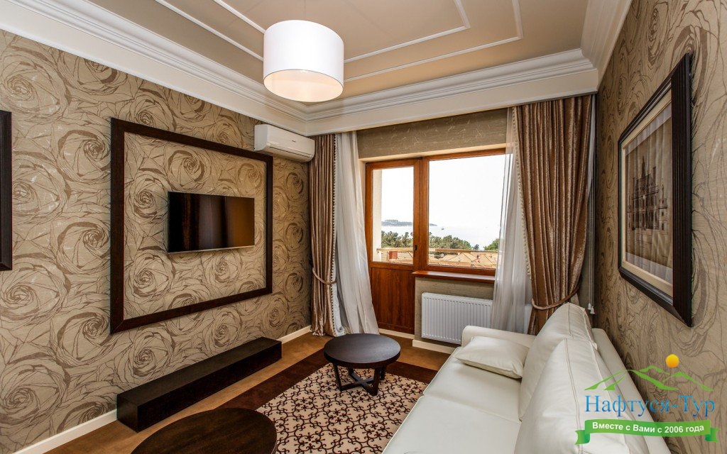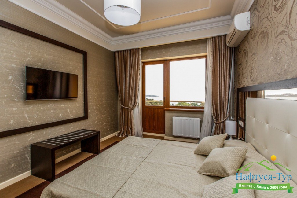 большой семейный номер с видом на море, вкусные завтраки, вышколенный персонал, особенно хочу отметить Дениса. он сделал наш отдых еще более незабываемым, предупредительный, внимательный, профи в гостинице прекрасный ресторан, шефу респект за выбор и вкусовые качества всех блюд.