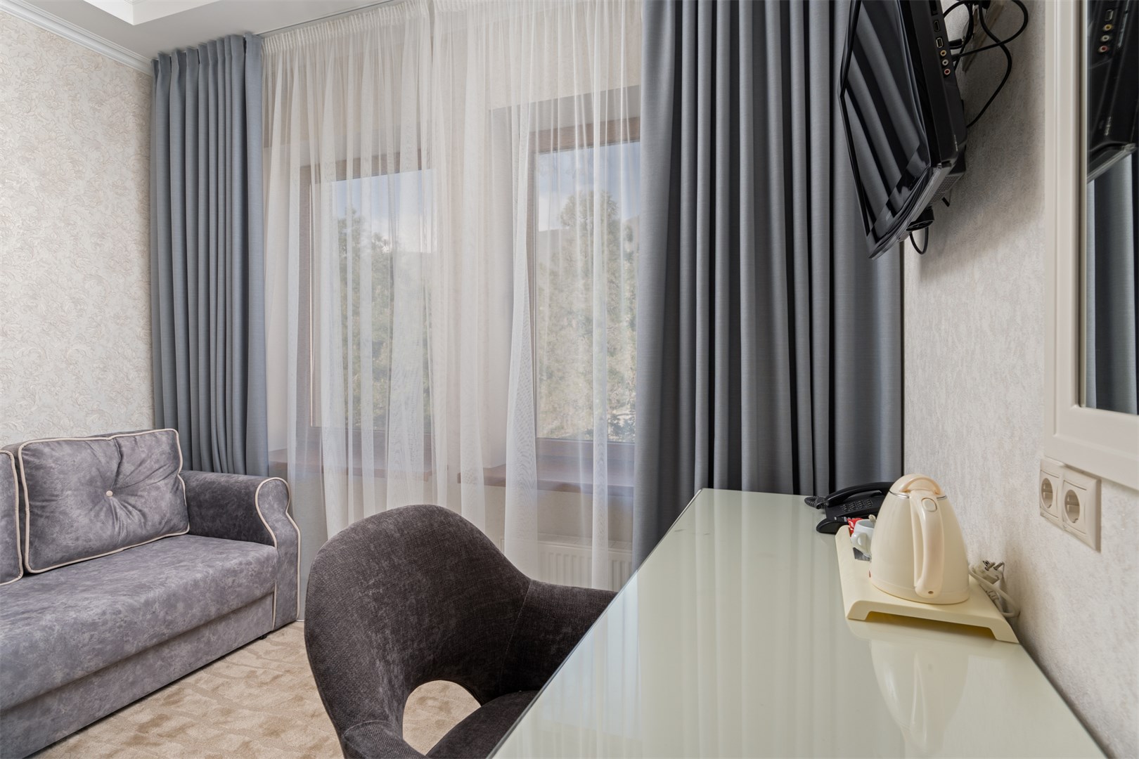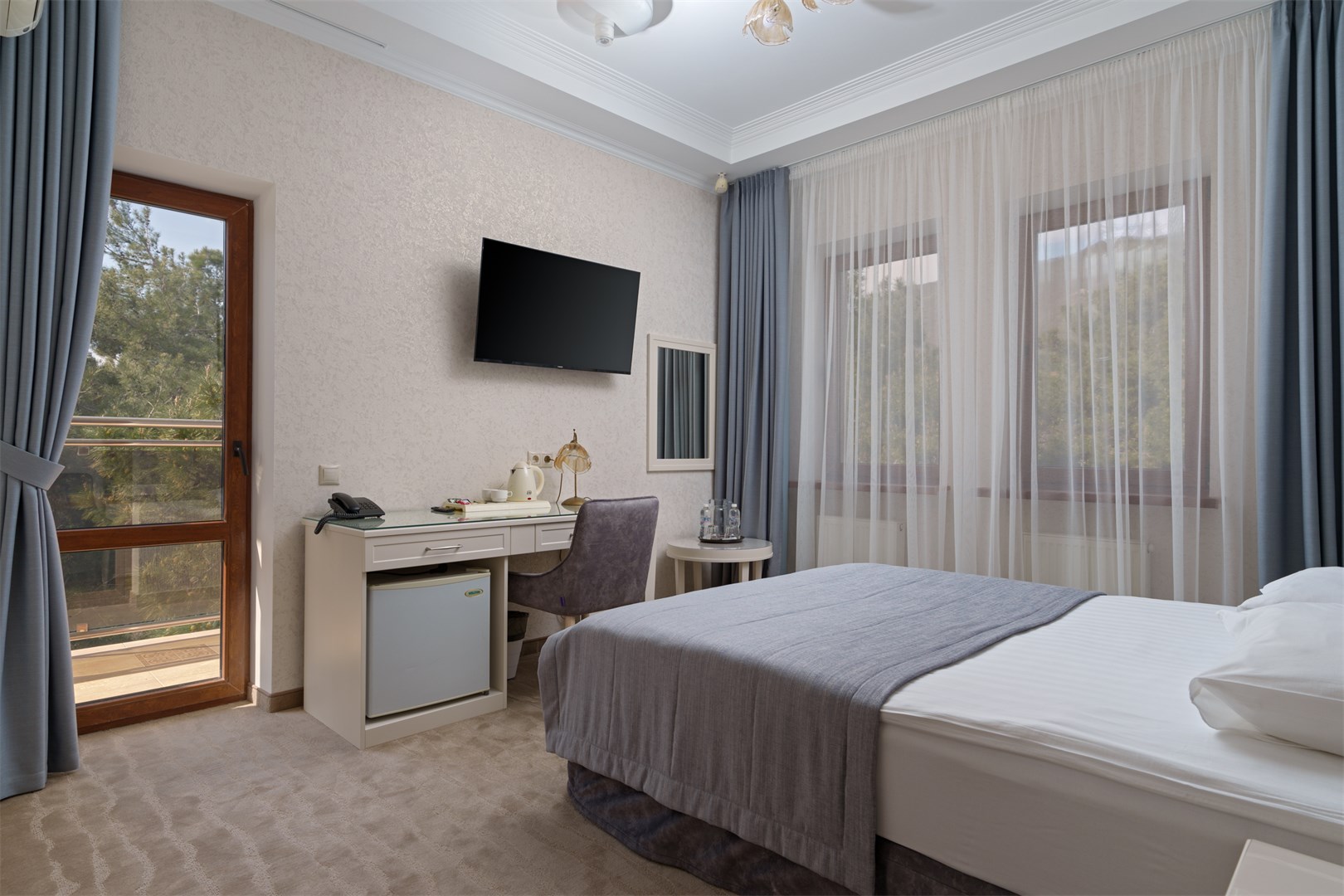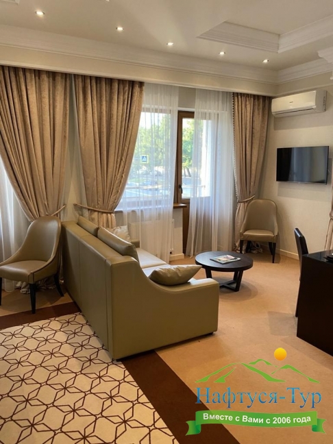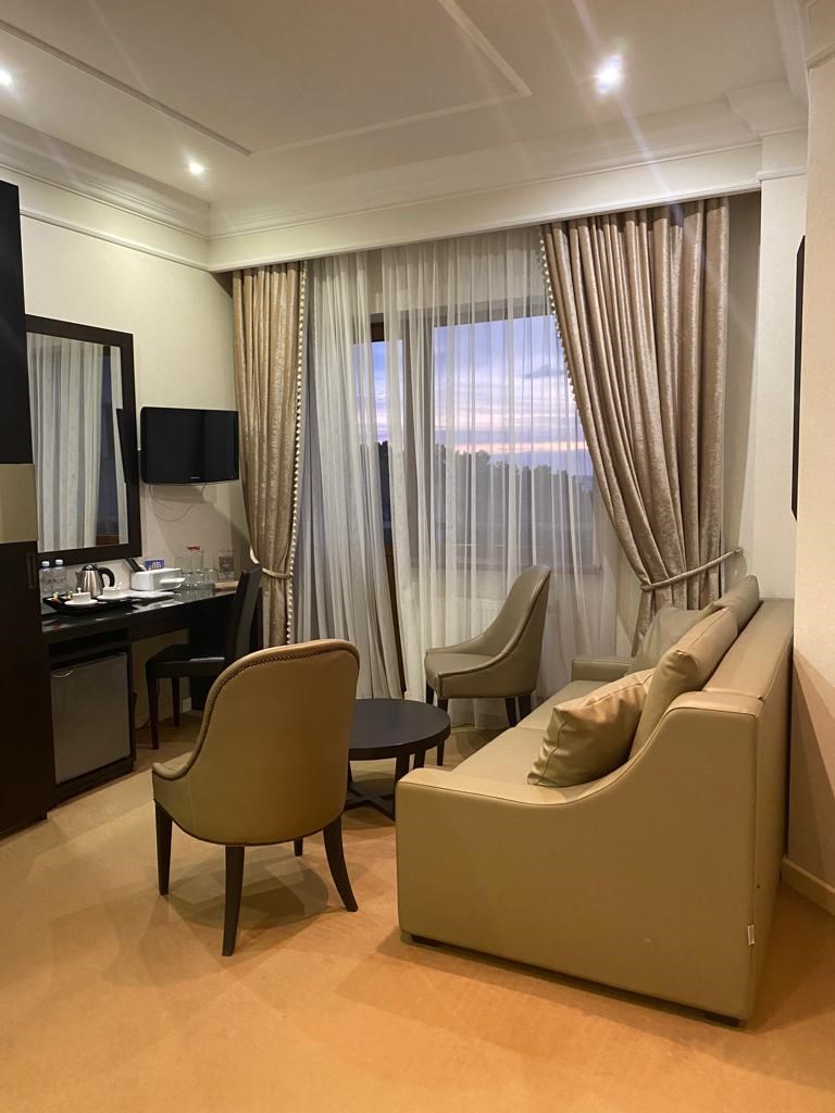 большой семейный номер с видом на море, вкусные завтраки, вышколенный персонал, особенно хочу отметить Дениса. он сделал наш отдых еще более незабываемым, предупредительный, внимательный, профи в гостинице прекрасный ресторан, шефу респект за выбор и вкусовые качества всех блюд.