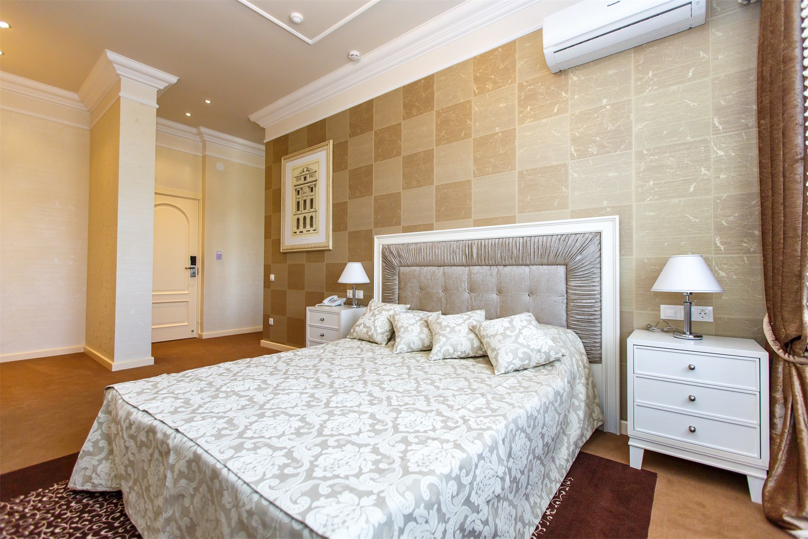 вешалка, зеркало, ковровое покрытие, кровати односпальные /одна двуспальная кровать, прикроватные тумбочки, столик туалетный, стул, шкаф