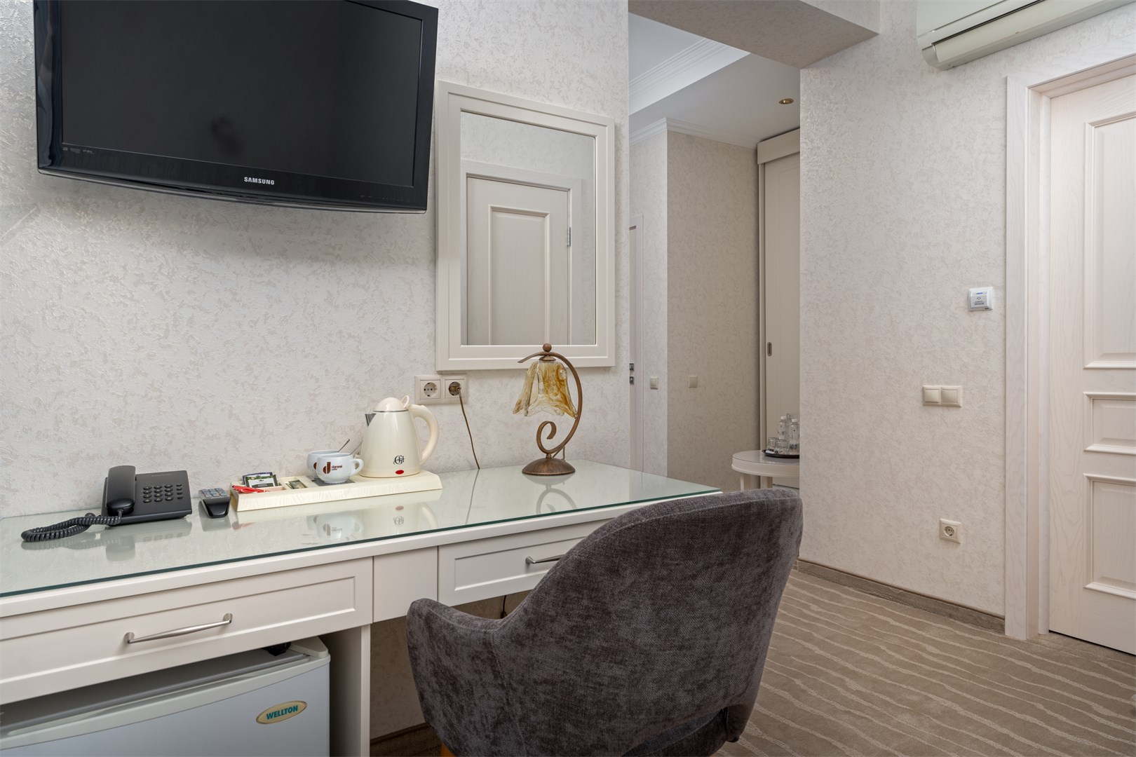 мини-холодильник, сейф, сплит-система, телевизор ЖК, телефон