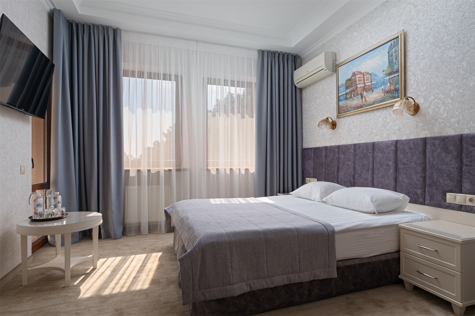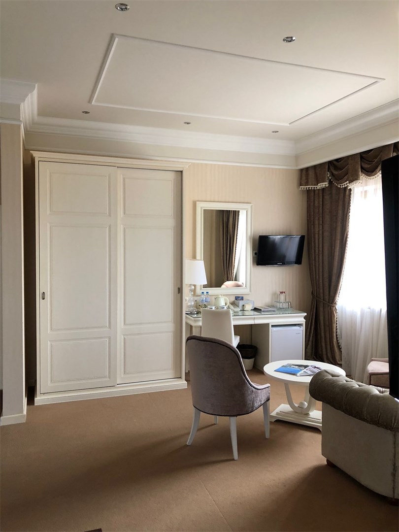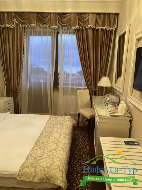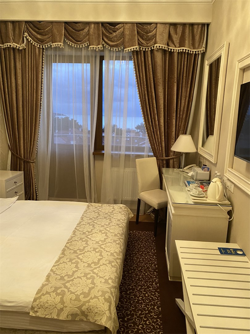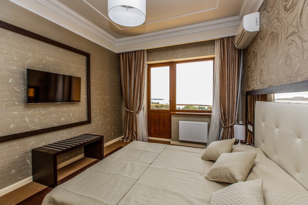 Хорошее расположение-рядом набережная и ресторан,отель расположен на красивой и тихой улице.Большая парковка,все номера с красивым видом.На ресепшене можно взять бутылочки с водой,что очень удобно.Шустрый wi-fi.
