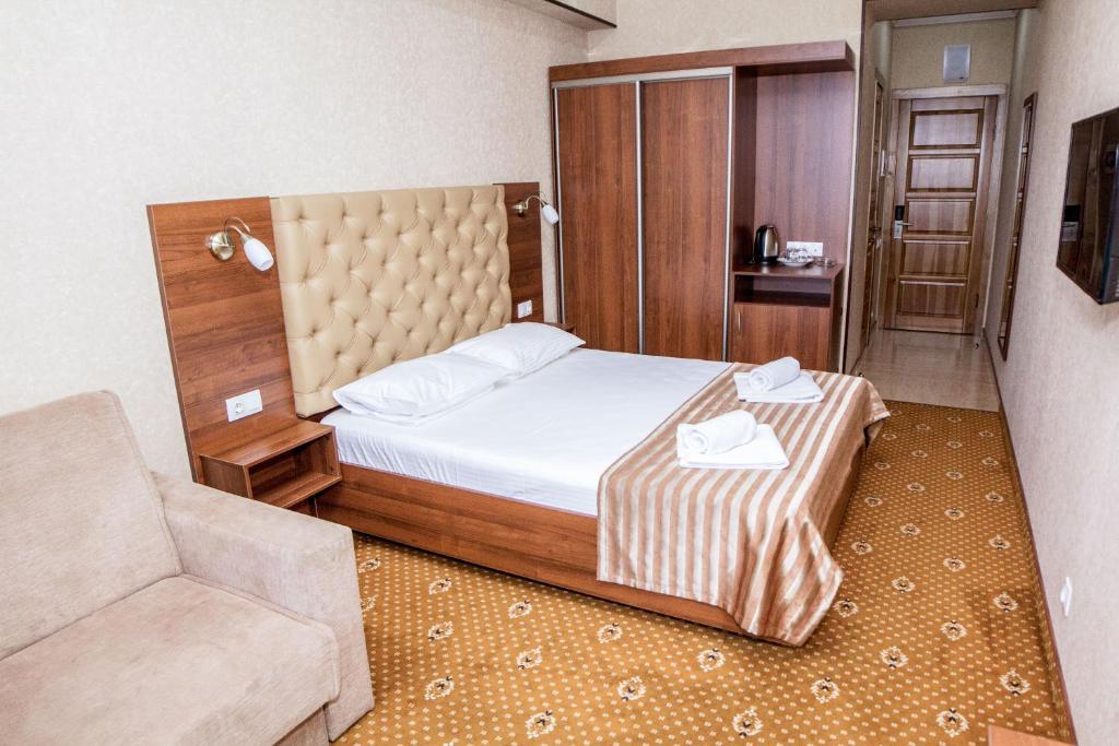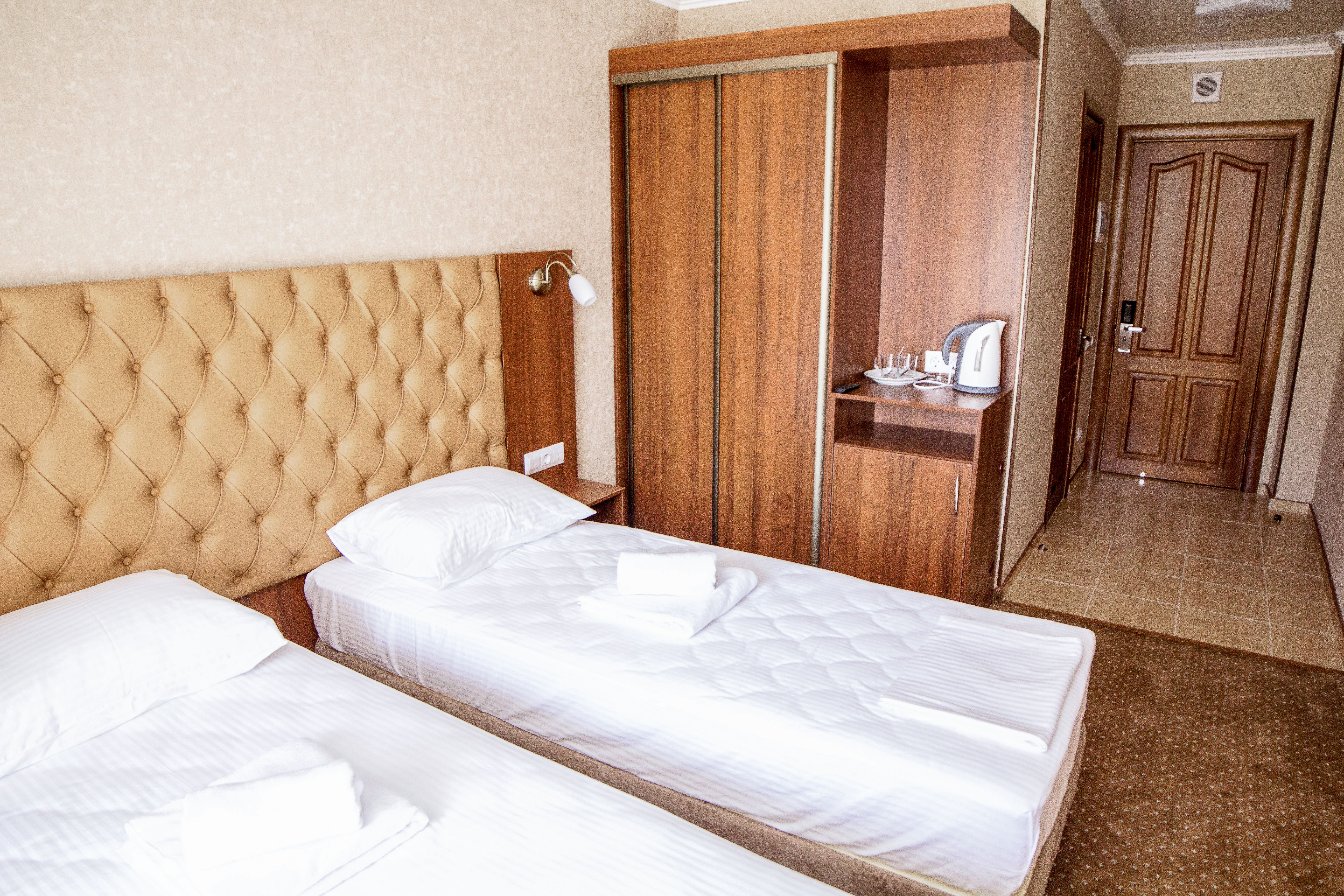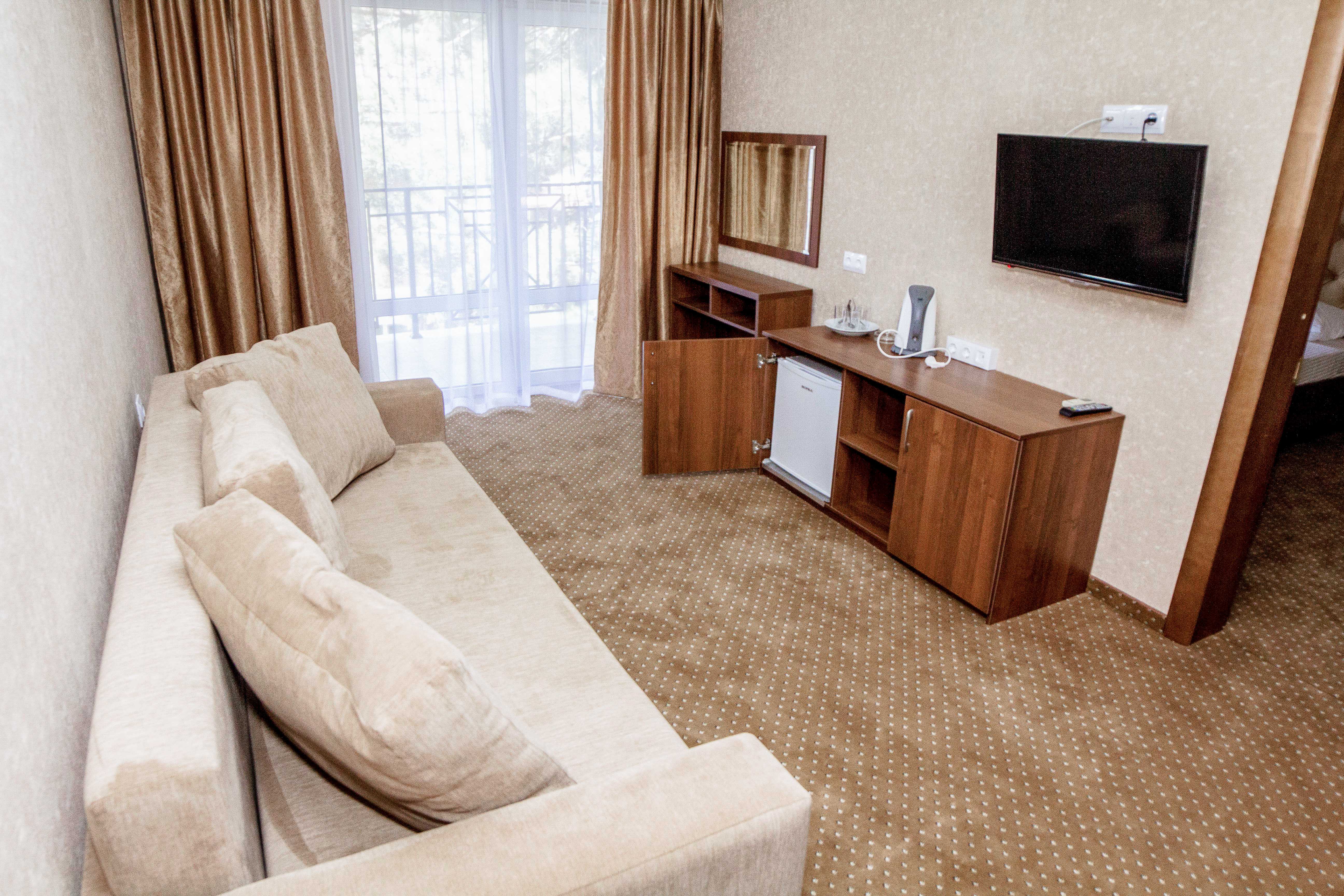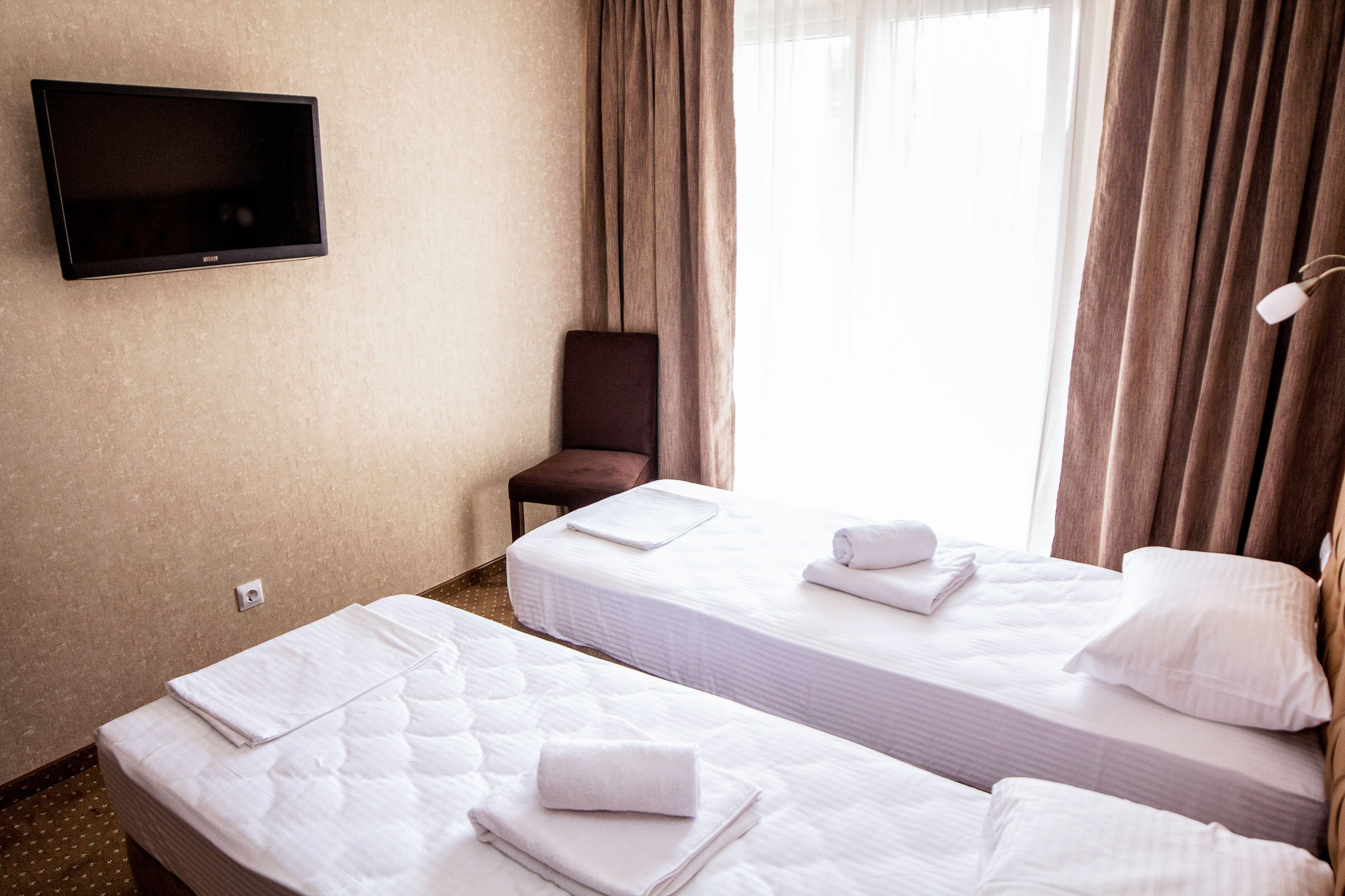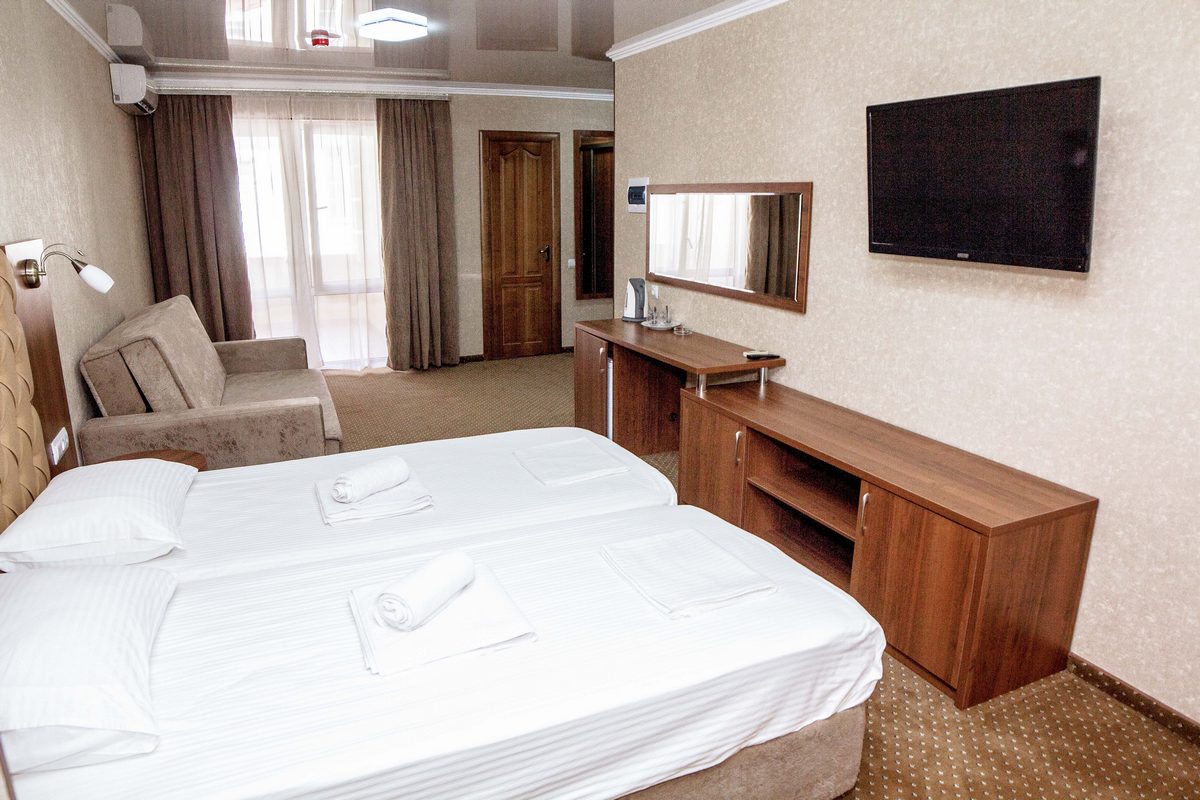 Бронировали номер со всеми удобствами на 6 этаже. Мебель, постельное белье, сантехника в душевой в отличном состоянии. Уборка в номере регулярная. На пляж возил автобус. Персонал в самом пансионате и в столовой вежливый, питание каждый раз свежее и вкусное.