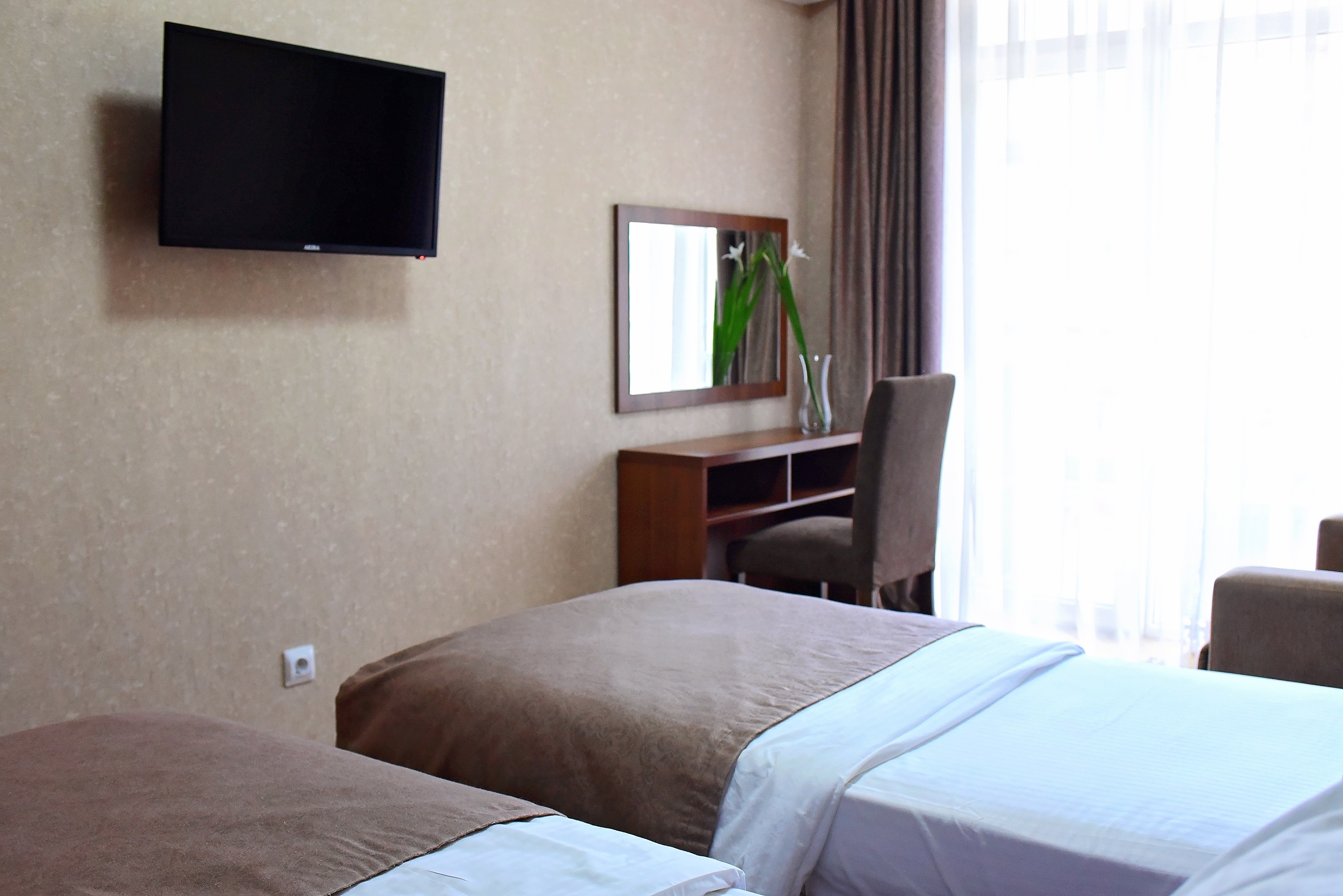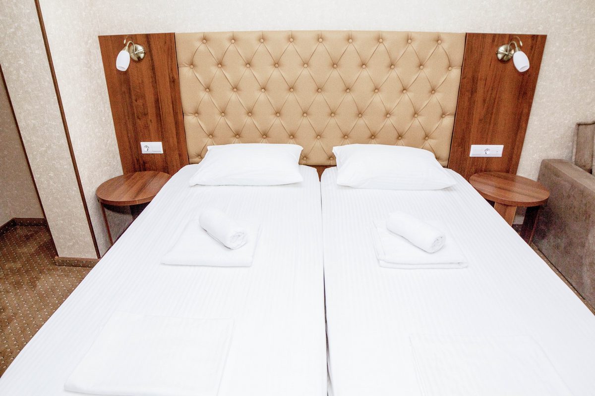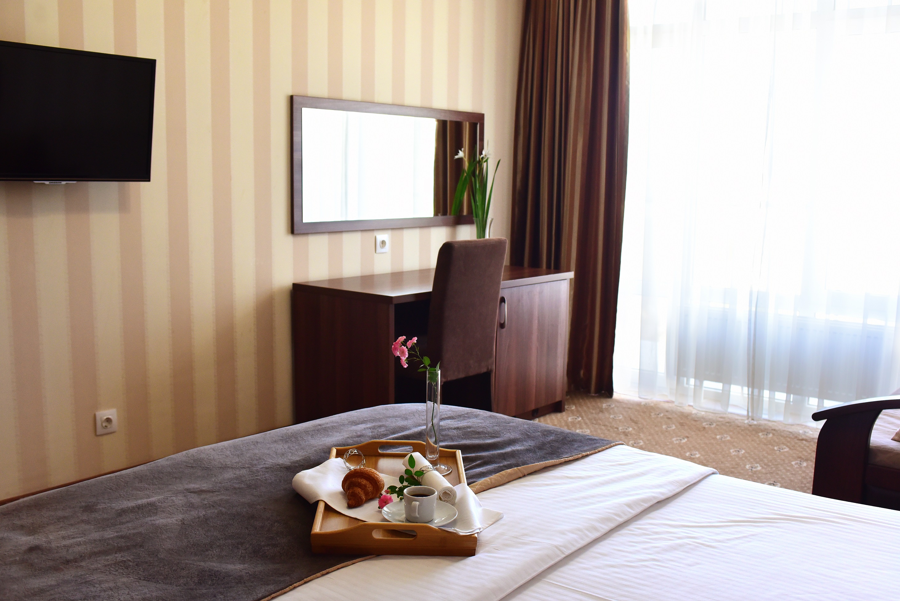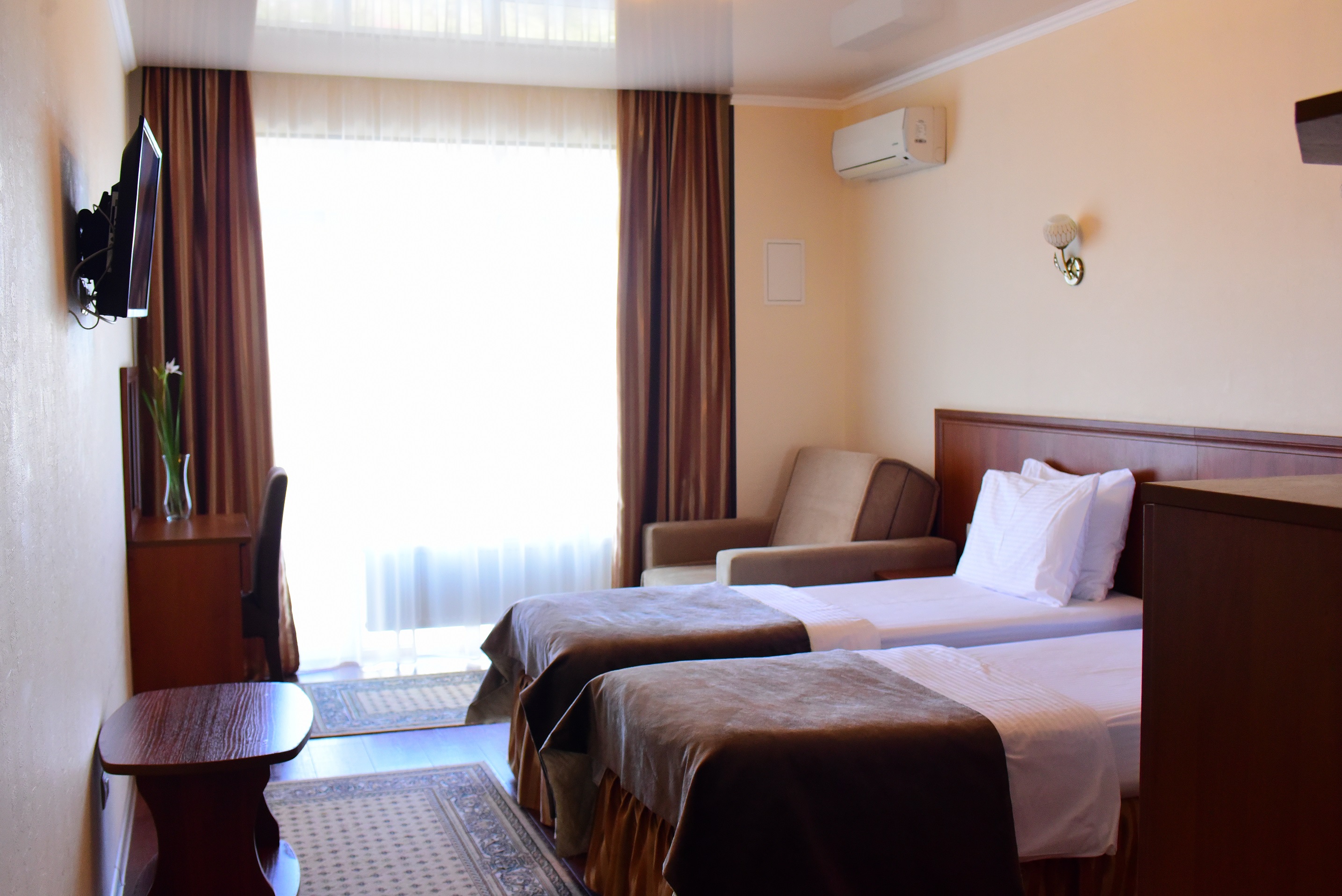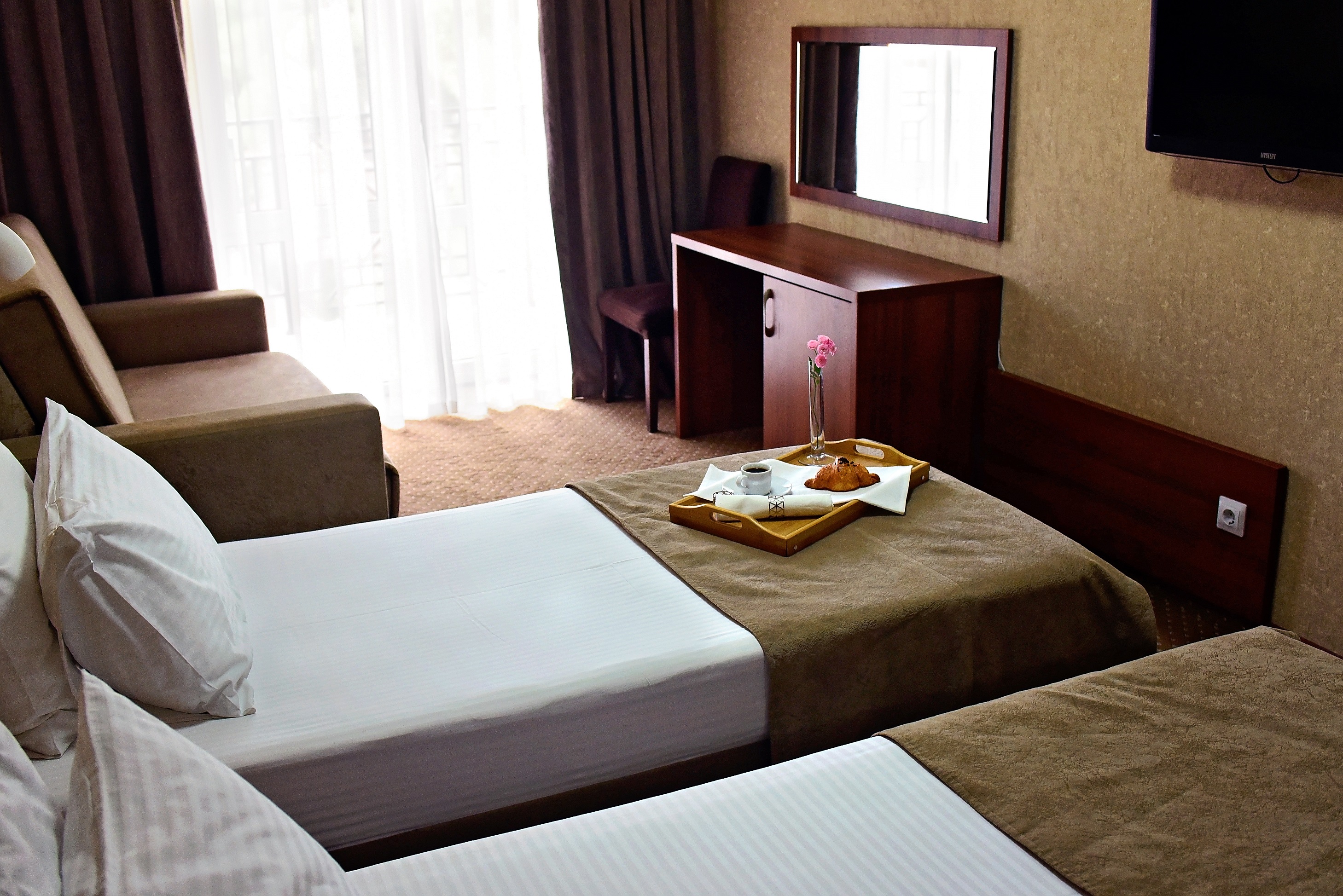 Бронировали номер со всеми удобствами на 6 этаже. Мебель, постельное белье, сантехника в душевой в отличном состоянии. Уборка в номере регулярная. На пляж возил автобус. Персонал в самом пансионате и в столовой вежливый, питание каждый раз свежее и вкусное.