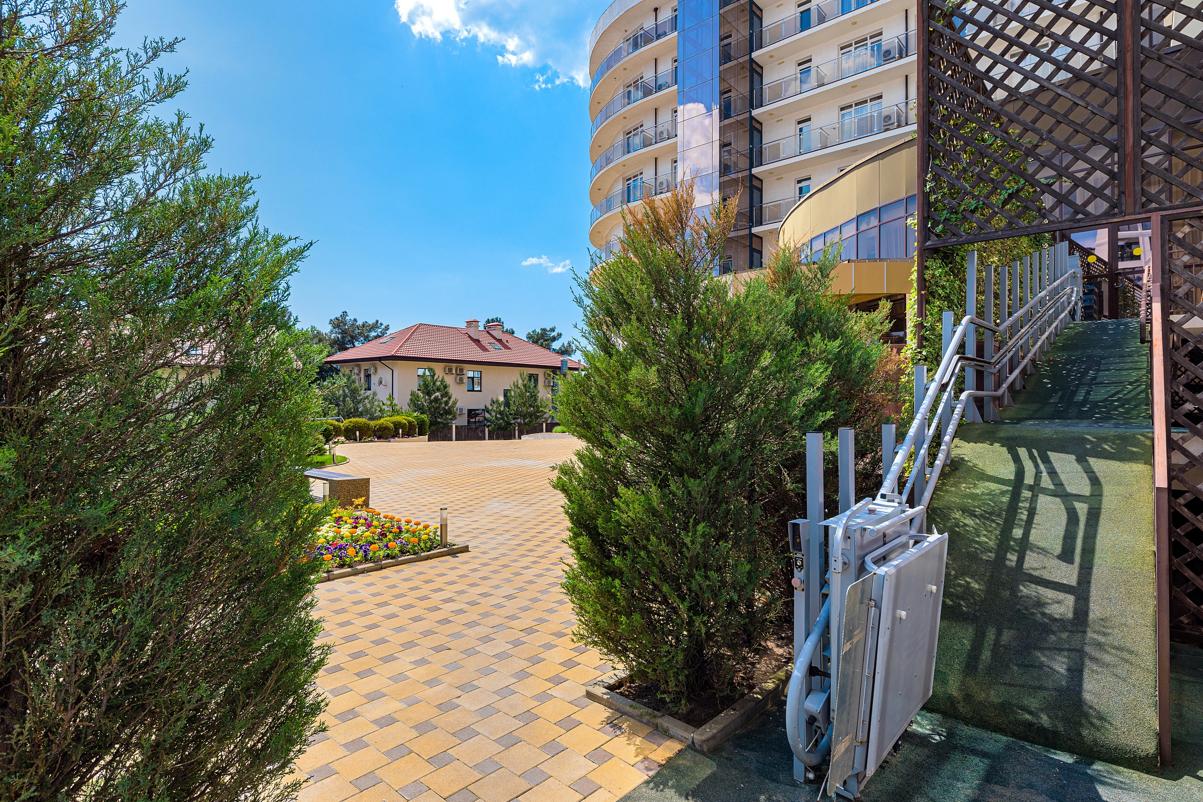 Расположение неплохое – ближе к центру и набережной. Все услуги включены –огромный плюс, очень удобно. Всегда будешь накормлен, отдохнула хоть от кухни кастрюль. На море автобус возил, и с моря тоже К пляжу спускались вниз легко, прогуливались.