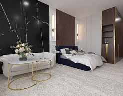 вешалка, диван раскладной, зеркало, кровать двуспальная, прикроватные тумбочки, столик журнальный, шкаф встроенный