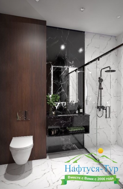с душем, туалетные принадлежности