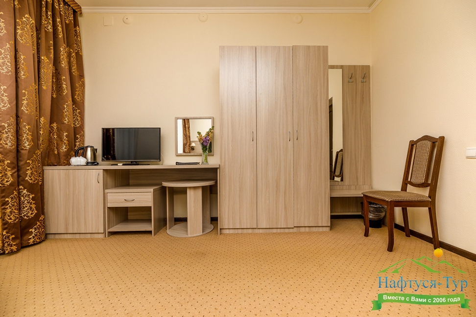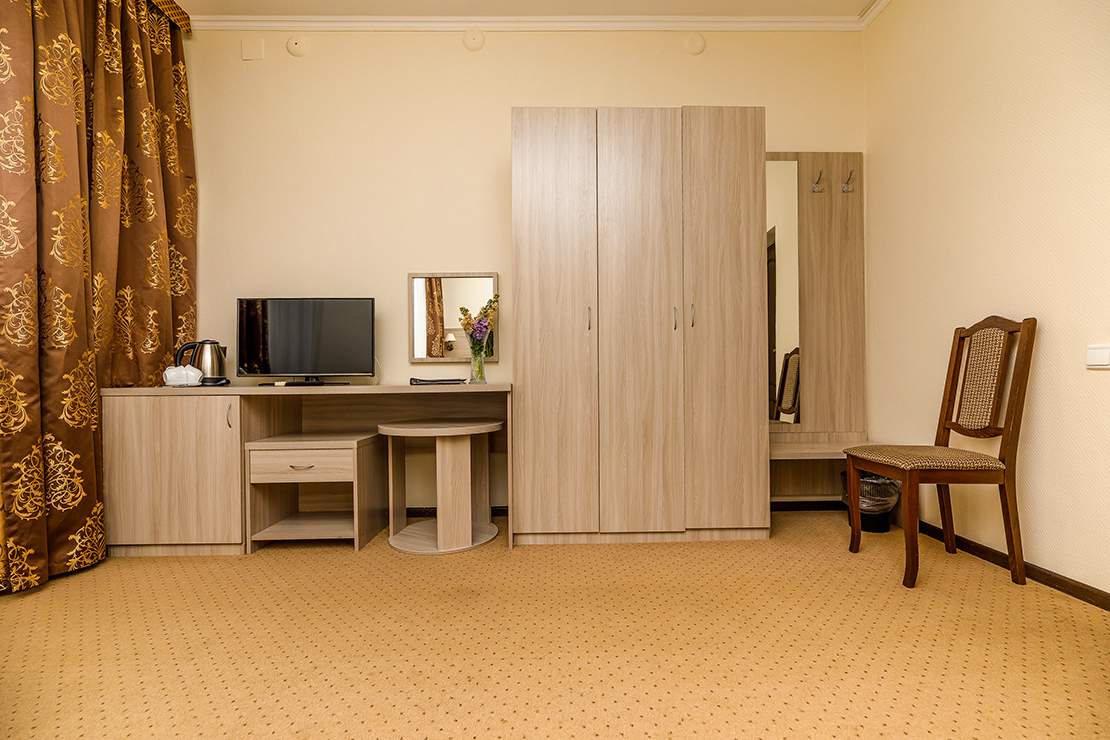 вешалка, диван раскладной, зеркало, кресло-кровать, кровати односпальные /одна двуспальная кровать, прикроватные тумбочки, столик журнальный, столик туалетный, стулья, шкаф