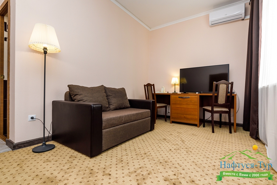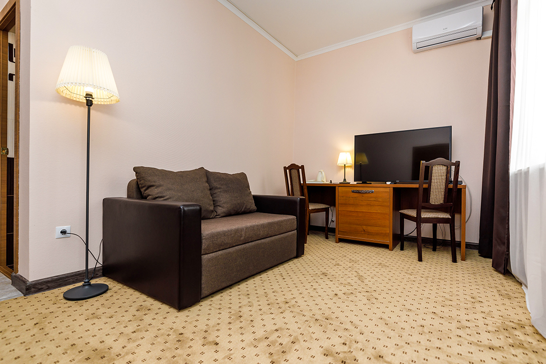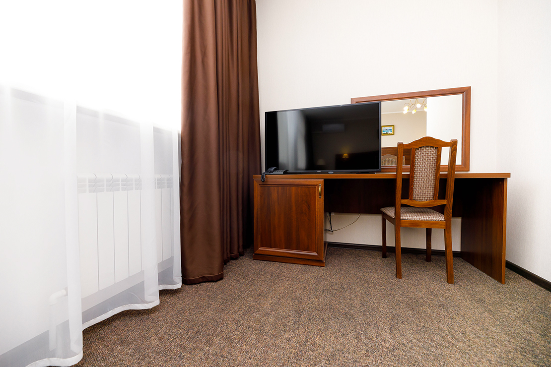 мини-холодильник, сплит-система, телевизор, чайный набор посуды, электрочайник