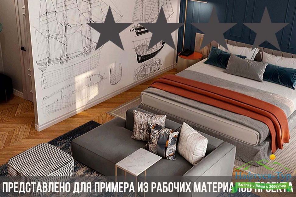 вешалка, диван раскладной, зеркало, кресло-кровать, кровати односпальные /одна двуспальная кровать, прикроватные тумбочки, столик журнальный, столик туалетный, стул, шкаф
