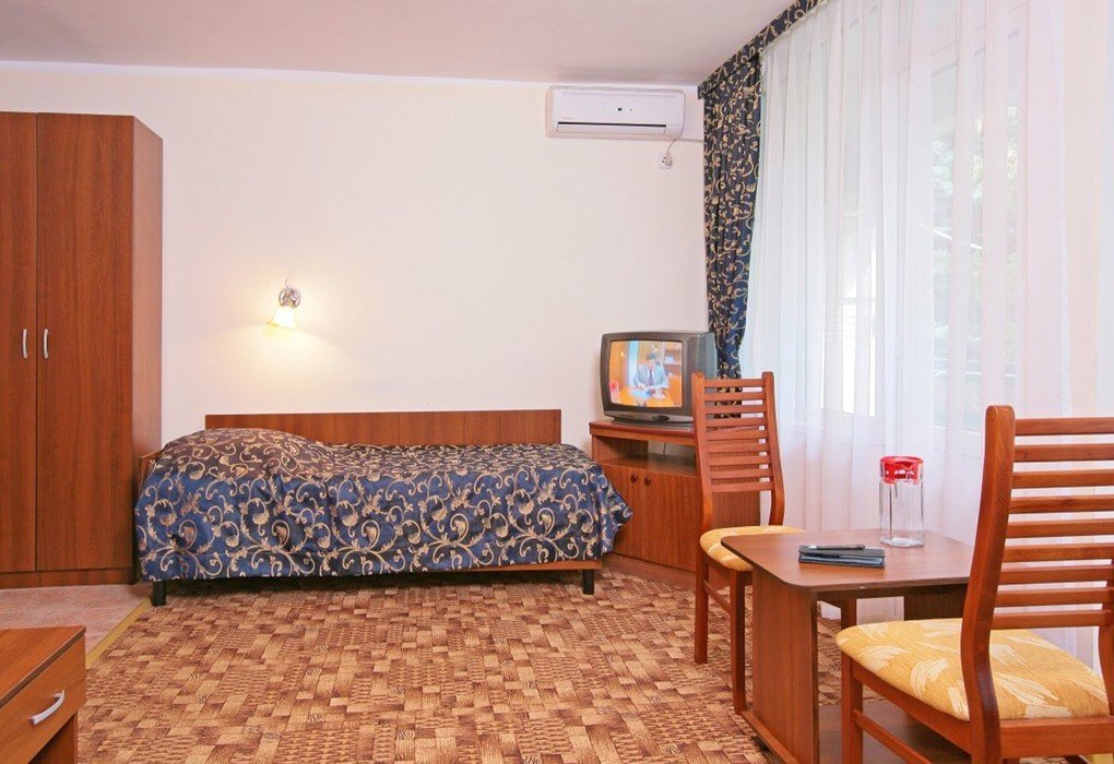 Понравилось хорошее расположение пансионата относительно центра города и рынка. Совсем не мешала музыка с кафешек и ресторанов, её почти не слышно. До пляжа 10 минут неторопливым шагом. Номер достался Стандартный.