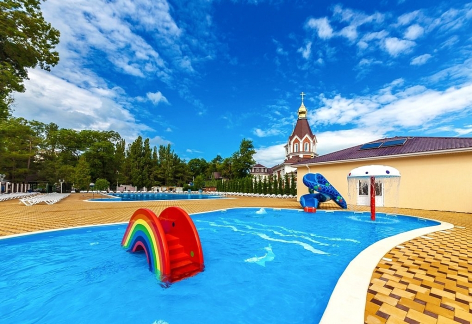 Детская чаша с подогревом! Пользование бассейном для отдыхающих в пансионате бесплатно.