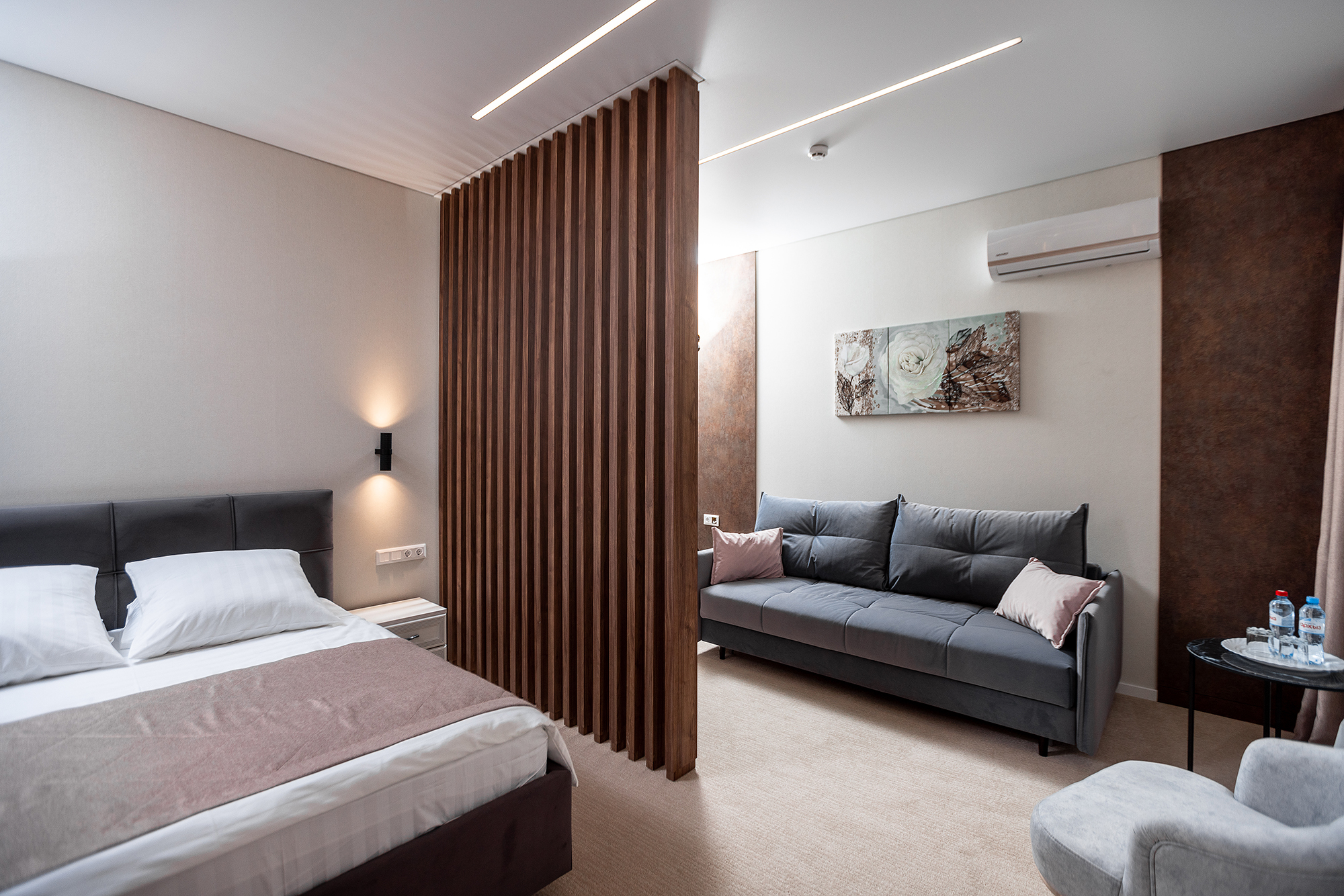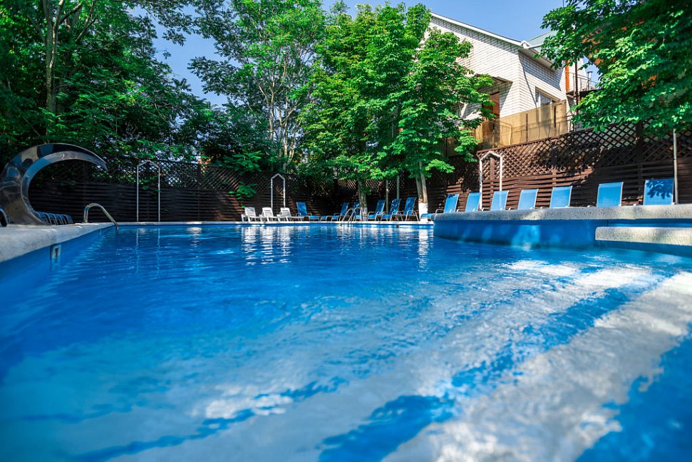 Очень понравилась закрытая ухоженная территория с мини-кафешкой, бассейном и детской площадкой. Месторасположение просто замечательное в самом центре и в тоже время в округе отеля тихо. Прекрасный персонал.
