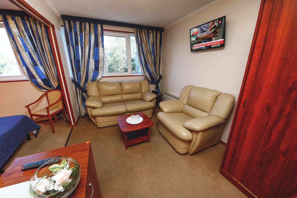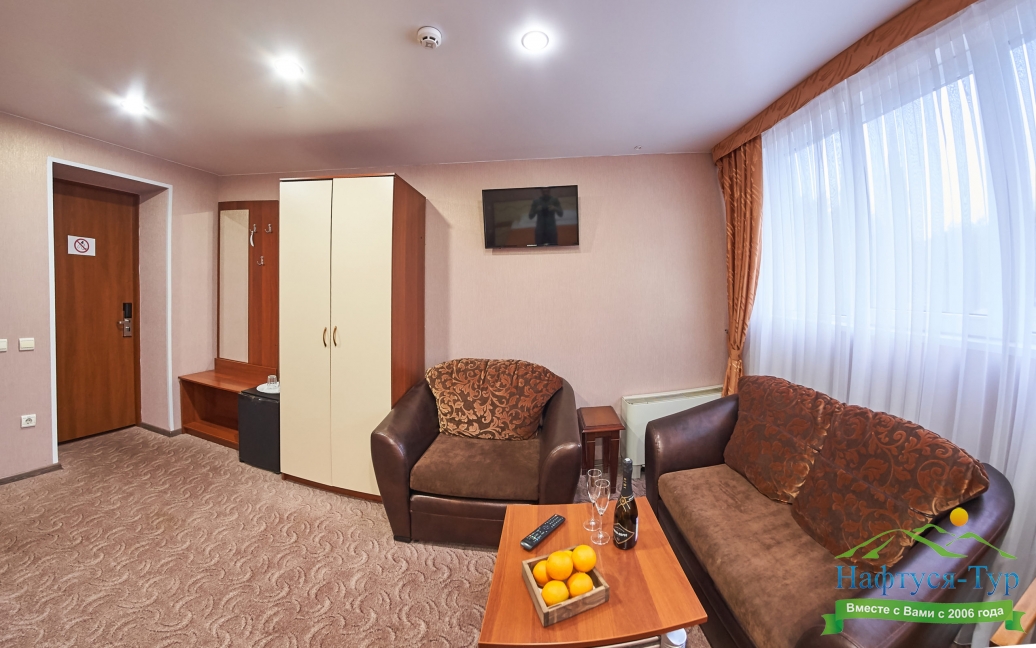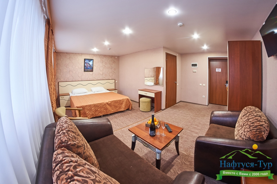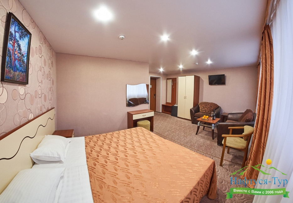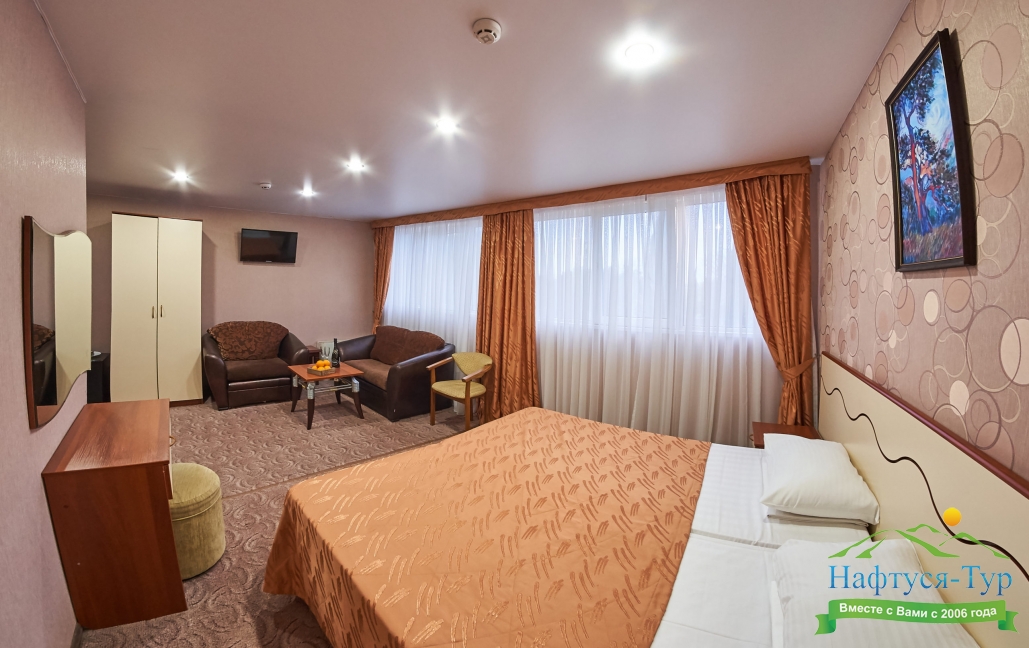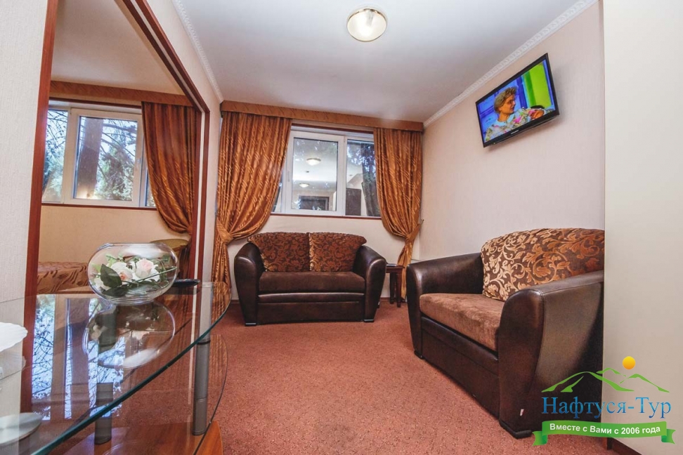 Изначально искали подходящий пансионат на сайте "Нафтуся тур". Хотим поблагодарить менеджера этой компании и оставить свой отзыв в знак уважения к компании, к которой обращаемся не впервые. Нас всё устроило. Понравилось хорошее месторасположение в самом центре города, близко от Набережной, в шаговой доступности магазины, рынок, разнообразные развлечения. Завтраки в пансионате вполне приемлемые, вкусные. Чисто, уютно, комфортно. Жили в Люксе, номер большой и удобный. Соотношение цена-качество отличное. Также впечатлили приятные бонусы в виде абонементов в боулинг, кинотеатр и т. д. Отдельное спасибо персоналу за приятное и качественное обслуживание. Порадовал ухоженный двор с множеством развлечений для детей и взрослых. Всем рекомендуем "Радугу" для отдыха. Очень приличное место. Конечно, мы остались довольны, и приехали бы туда ещё!!!
