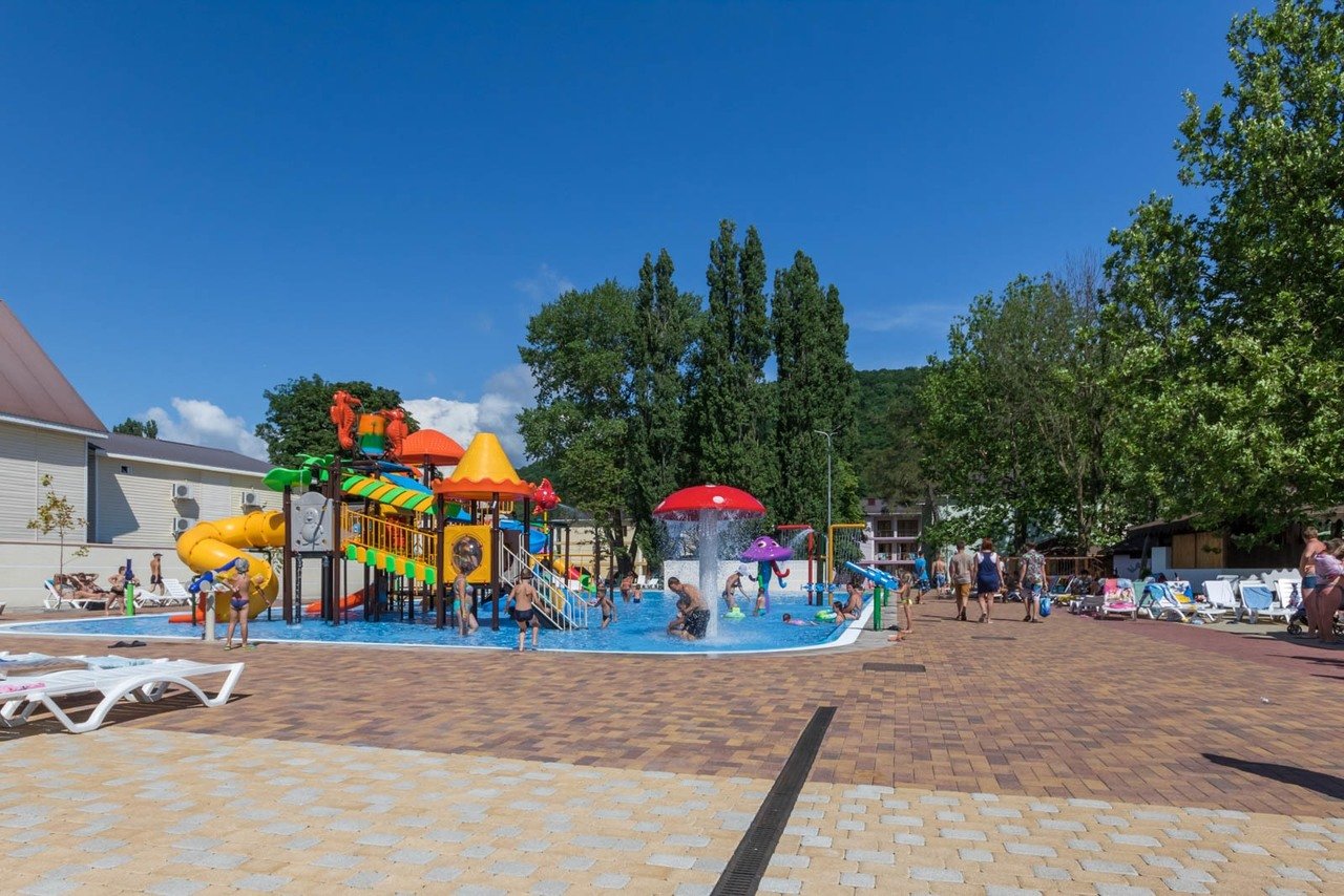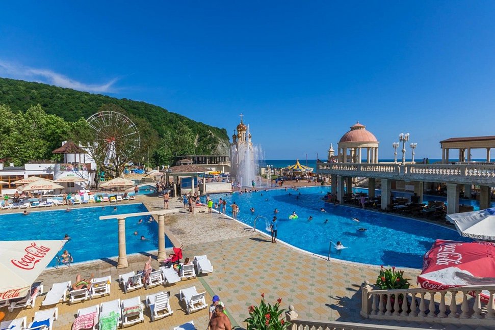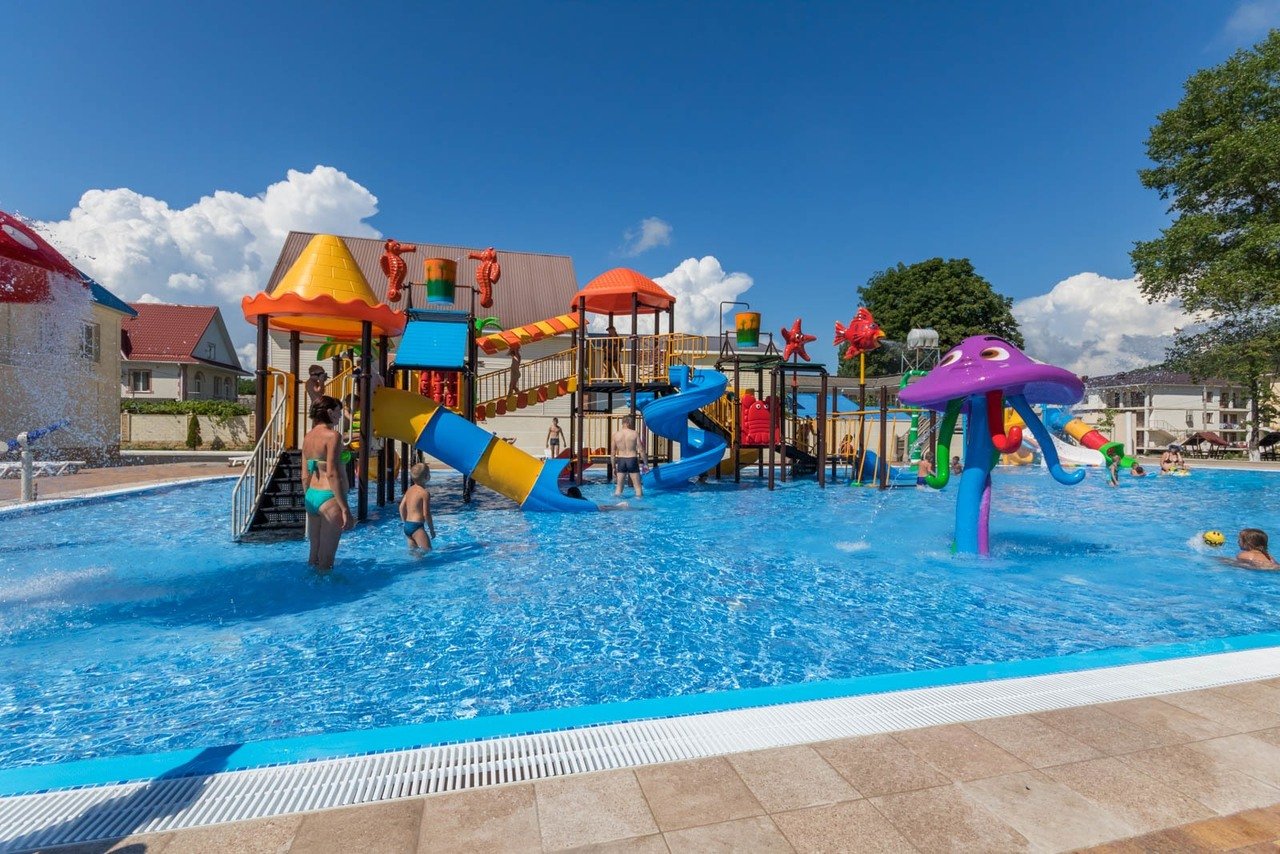Самый впечатляющий по своим размерам и красоте водный парк на всём Черноморском побережье принадлежит ГРК «Альбатрос». Его общая вместимость – 5500 кубометров чистой прозрачной пресной воды. Парк состоит из нескольких бассейнов и водной реки глубиной 1.2м.