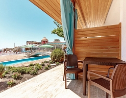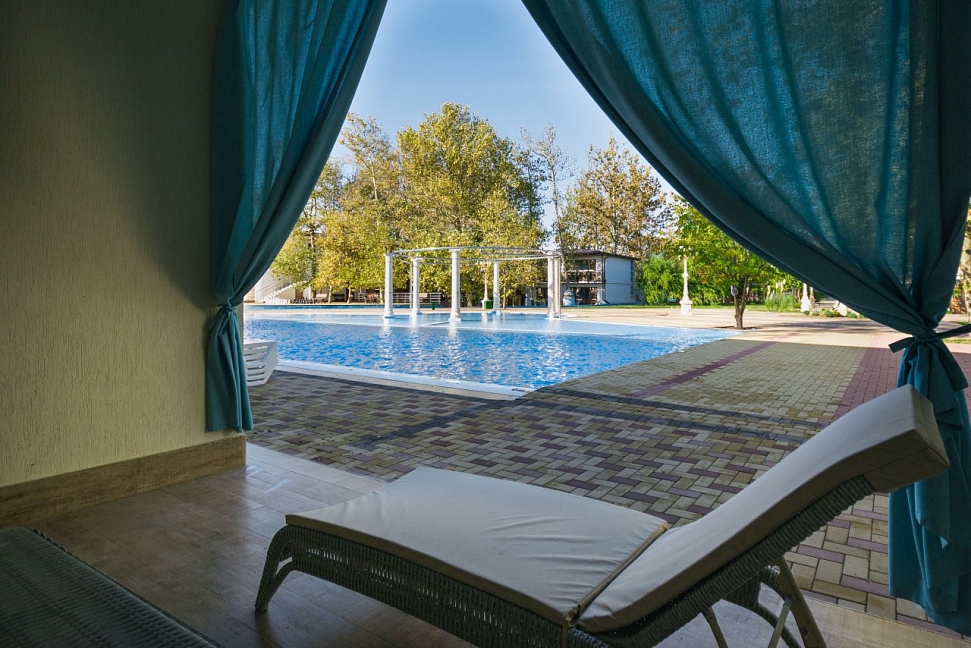 - На любой из трёх роскошных зон у бассейнов вы можете приятно провести время за освежающим коктейлем или отведать любое блюдо из богатого меню Кафе-Клуб «Альбатрос».