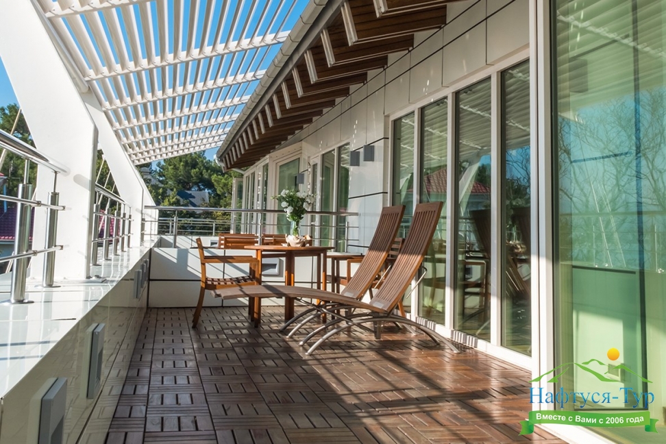 Расположение: Первая линия у моря (50 м до пляжа), 5,5 км до аэропорта, 34 км до ж/д вокзала Новороссийск