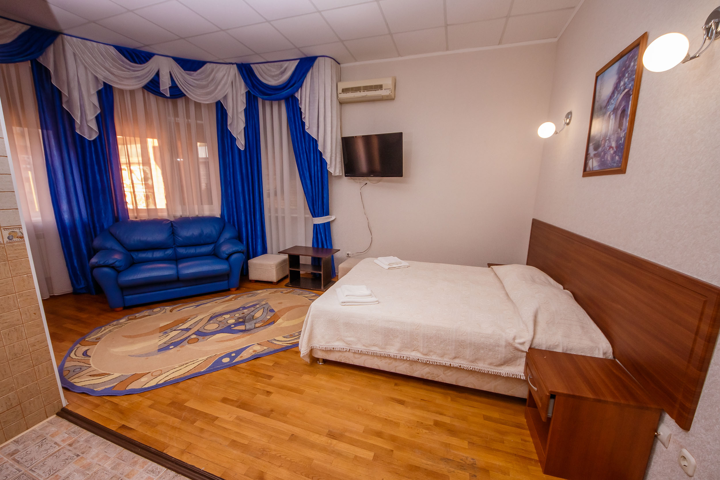 кондиционер, мини-холодильник, телевизор ЖК, телефон, чайный набор посуды