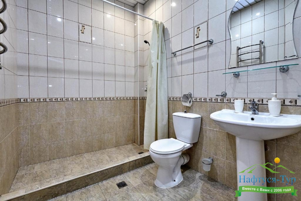 с душем, туалетные принадлежности, фен