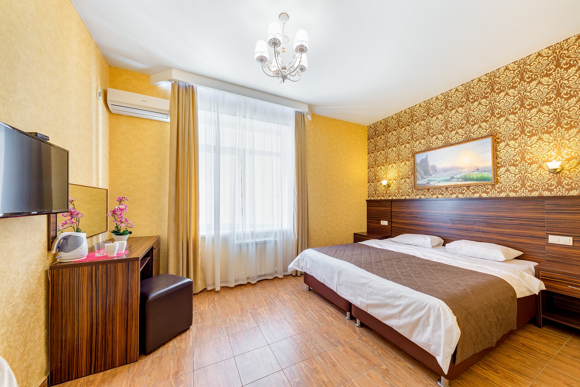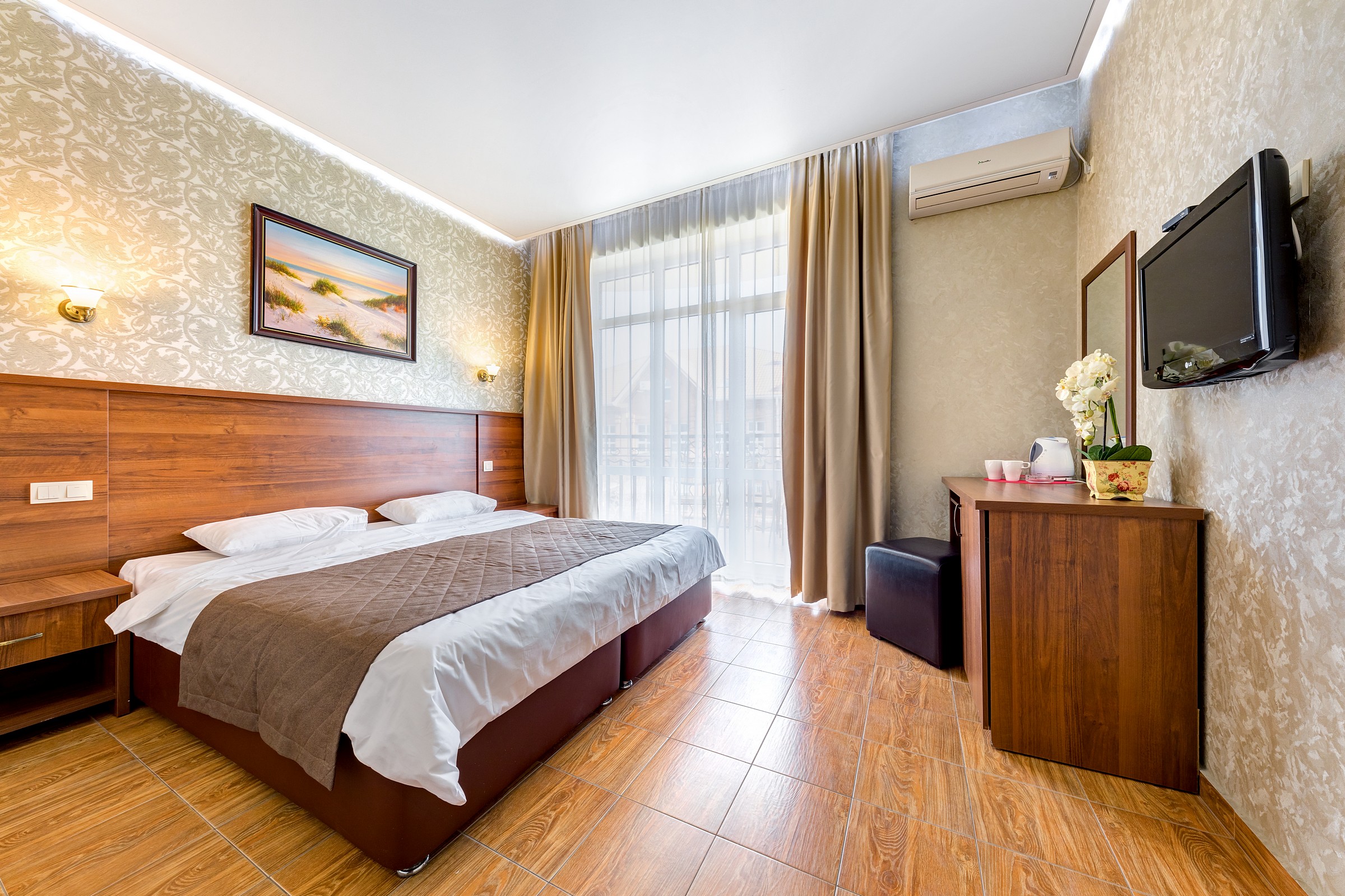 мини-холодильник, набор посуды, сплит-система, телевизор