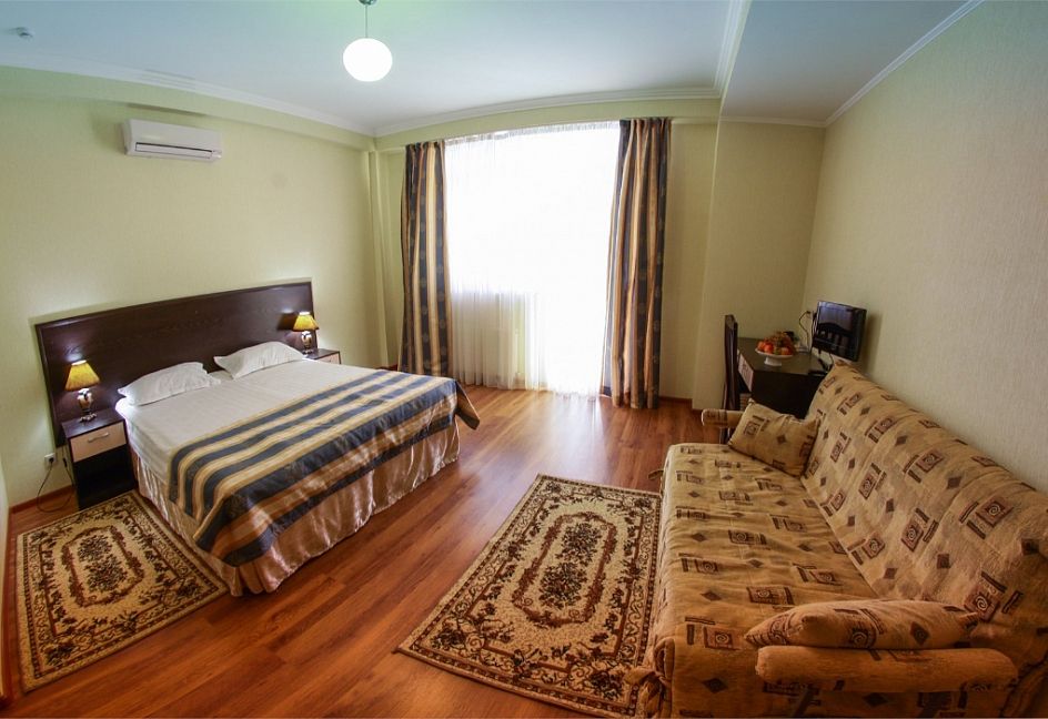 Отдыхали в отеле «Green Hosta» с 7 по 17 июня. Приехали в 7 утра. Заселение в номер в 14:00. Сил ждать не было. Хотели спать. Дружелюбная девушка на ресепшене предложила доплатить 800₽ и заселить сразу.