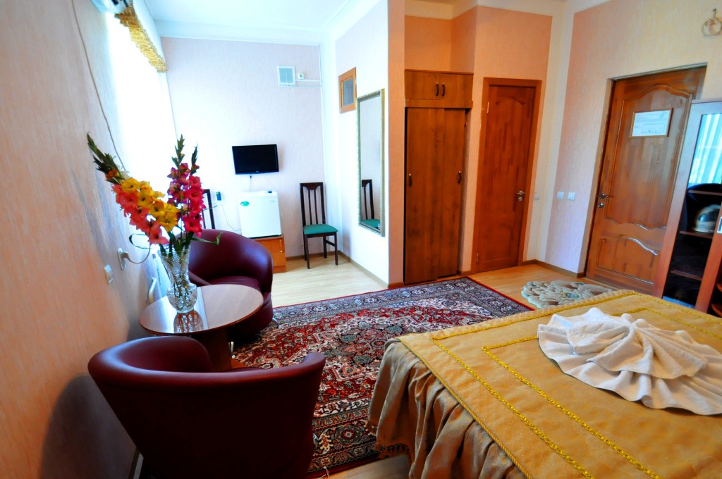 Размещение – 2-х этажная гостиница (15 номеров 1-2-местное размещение. В номере: климат, ТВ, сан.узел/душ, холодильник, чайник, ). Два 4-х местных номера. Огражденная охраняемая Парковка на 100 авто (оплачивается отдельно).